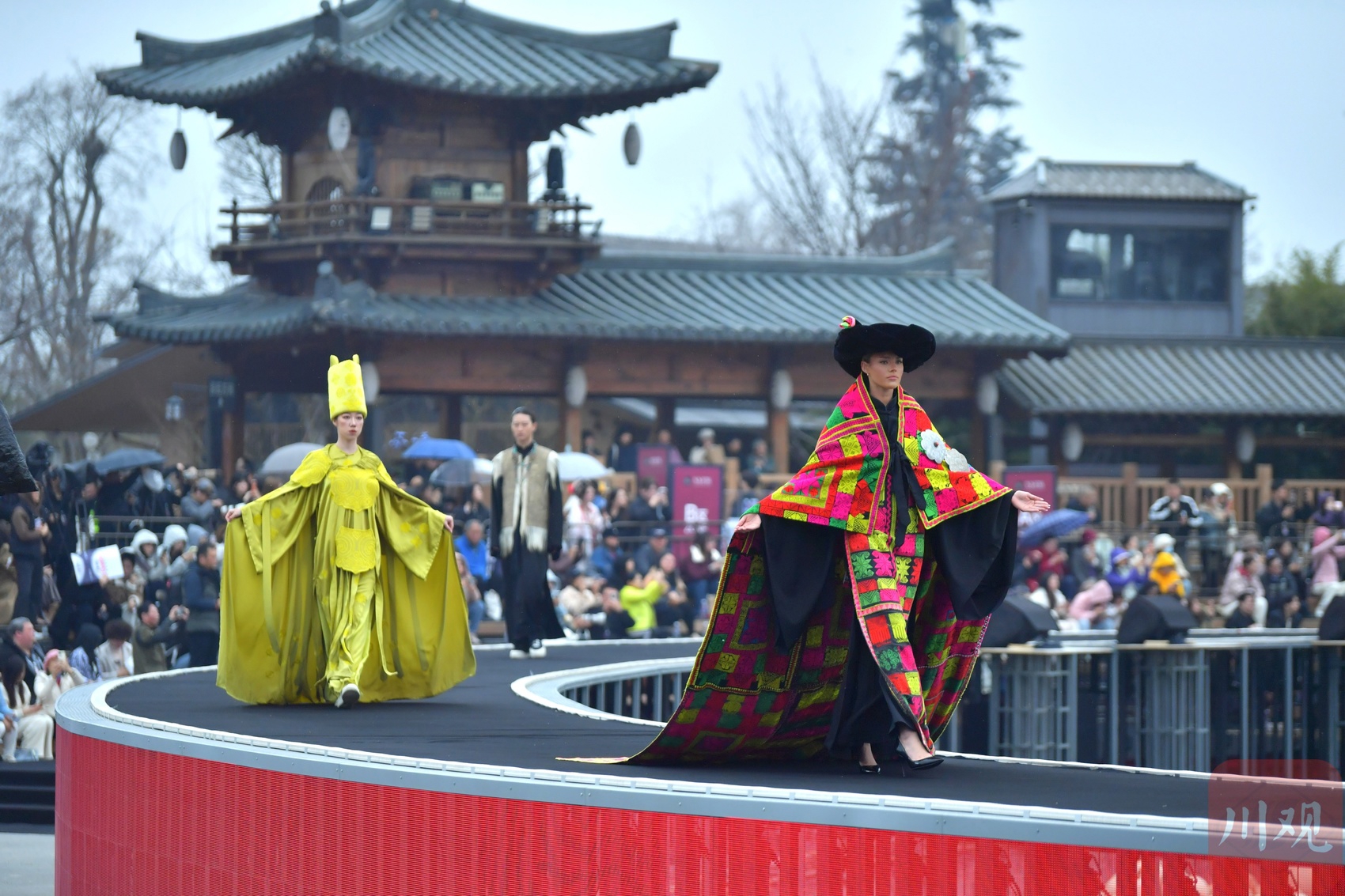 值得关注的是,来自四川省阿坝藏族羌族自治州茂县沙坝镇白溪村的羌族姑娘陈士江,带着她的非遗羌绣作品"尔玛的嫁衣"系列惊艳亮相开幕秀,让世界看见从四川大山深处走出来的羌族服饰魅力,在山水环绕的360°沉浸式秀场上绽放出耀眼光芒 。