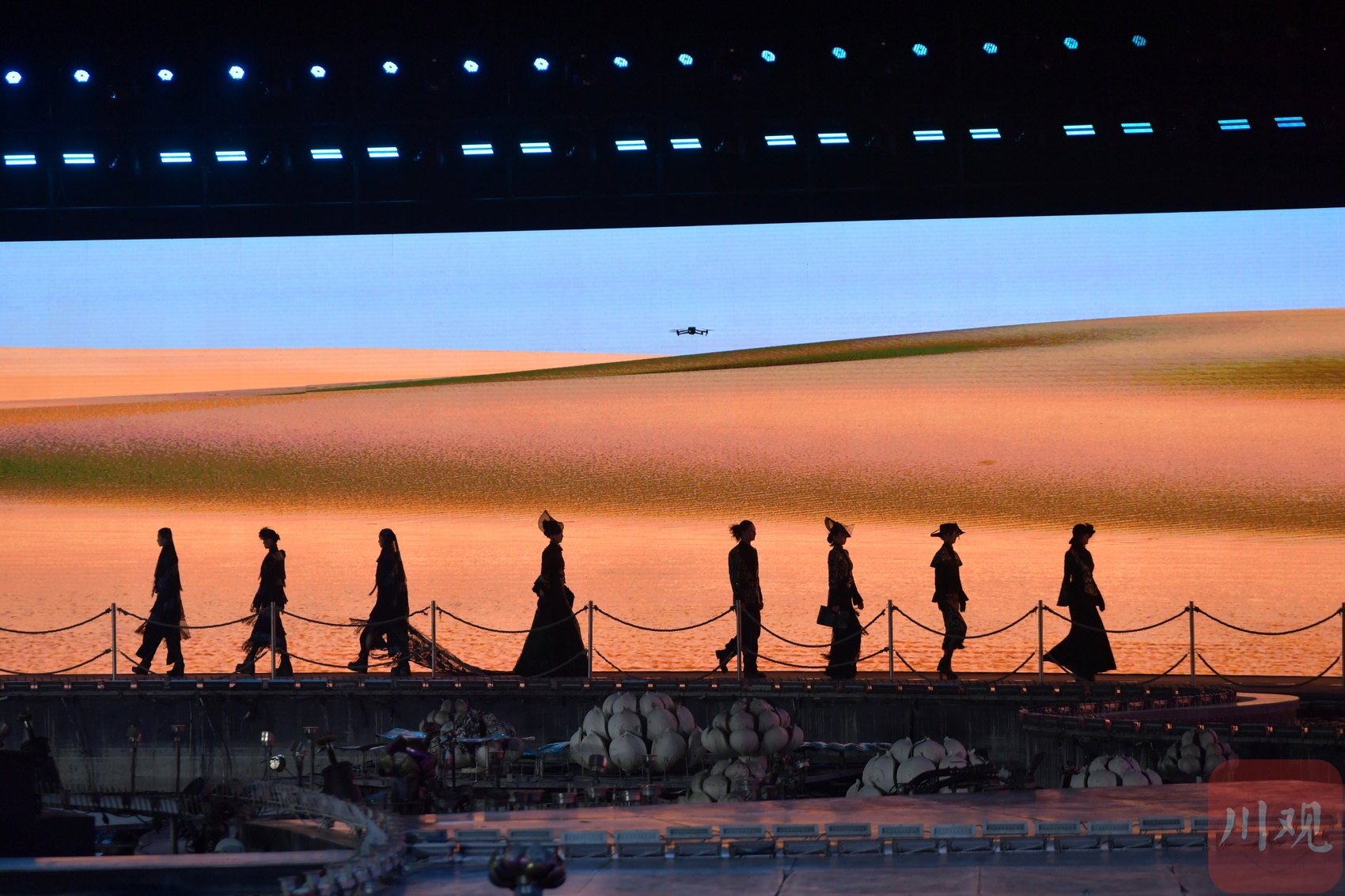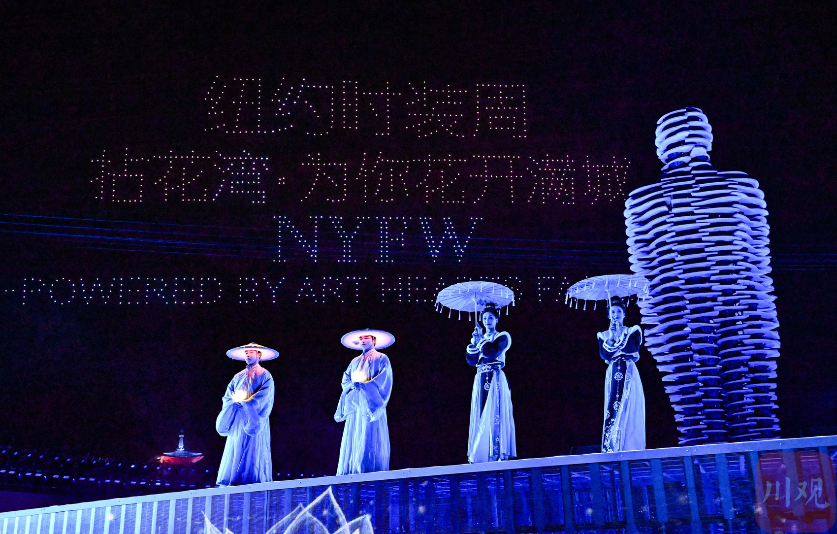 2026年3月20日,纽约时装周亚太无锡秀在太湖之滨的拈花湾启幕,空中上演无人机表演。
