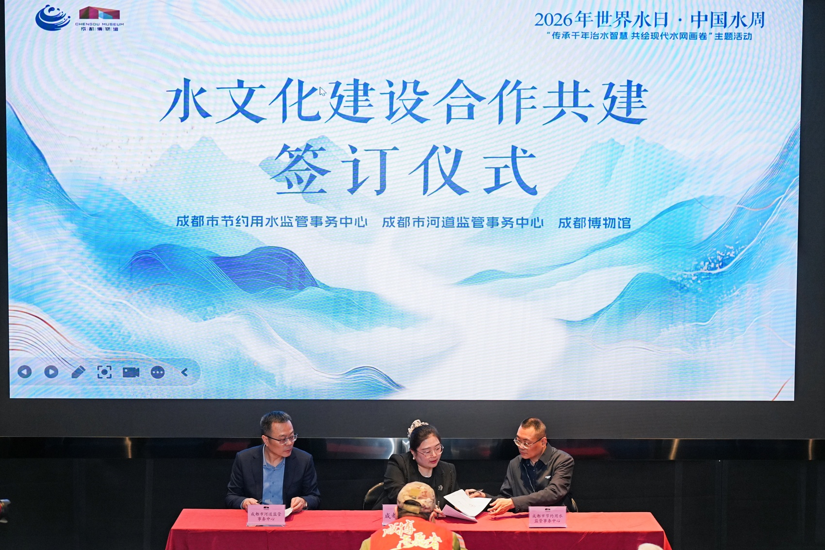 3月22日,是第三十四届“世界水日”和第三十九届“中国水周”首日。当天,成都市水务局主办“传承千年治水智慧 共绘现代水网画卷”主题活动。活动启动仪式上,成都市节约用水监管事务中心、成都市河道监管事务中心与成都博物馆签署战略合作协议,携手推进水文化建设。