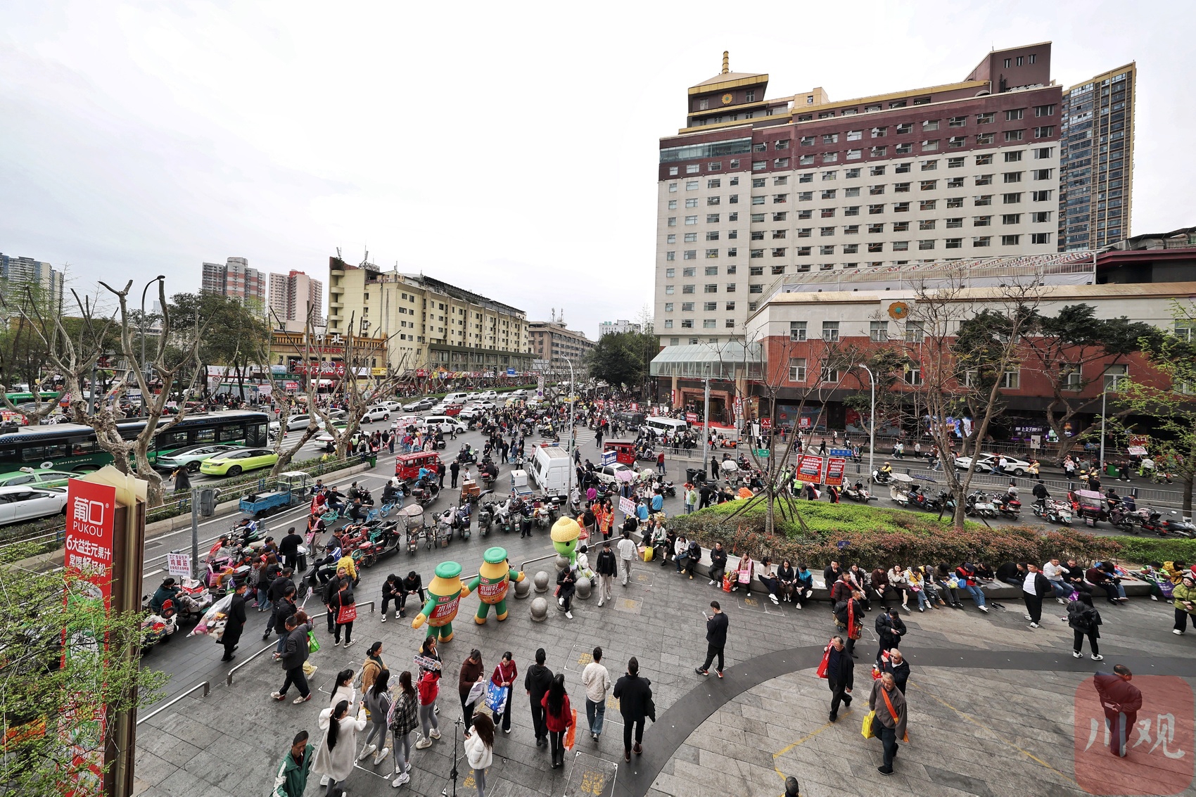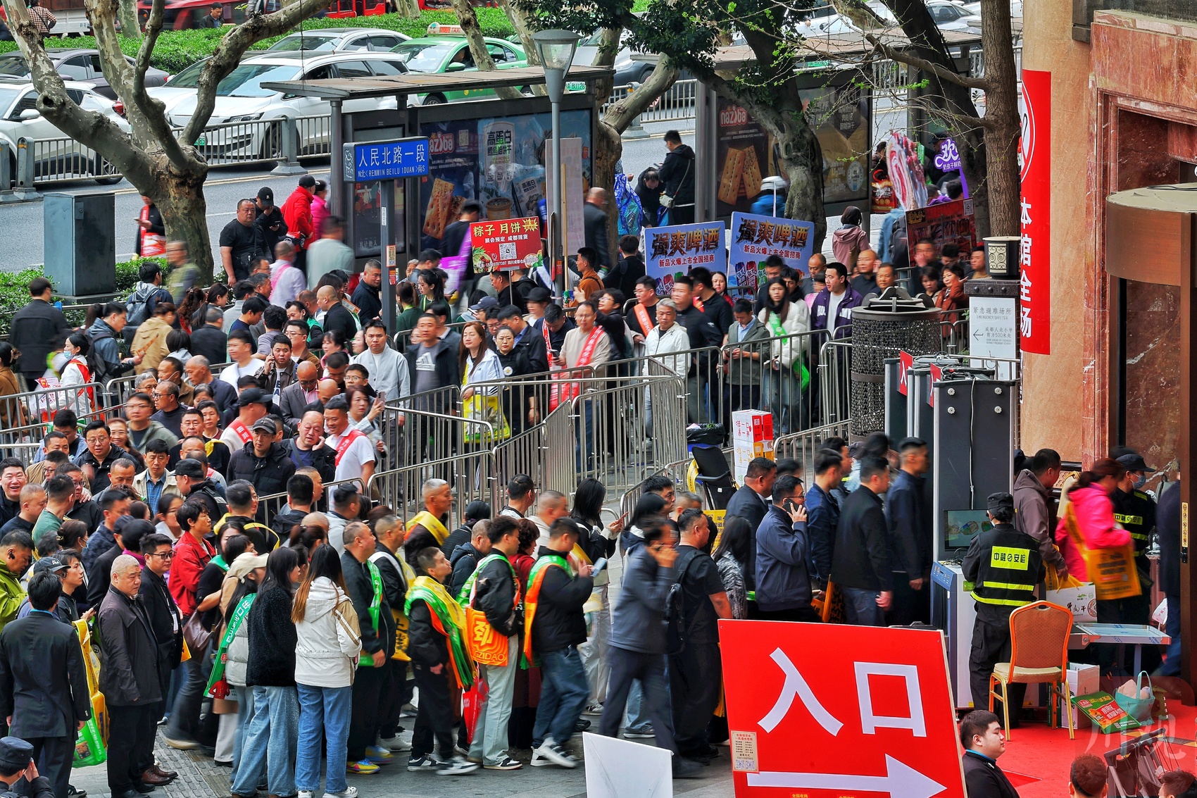 3月23日,春分已过,成都的街头巷尾除了玉兰和七里香的淡淡花香,又多了一股醇厚的酒香与甜美的食品气息。参加第114届全国糖酒商品交易会的商家在各大酒店区域的预热展览已火热开启。从火车北站一路向南,经人民北路、人民中路、人民南路,沿线各大宾馆酒店变身“开放式展厅”。在锦江宾馆、西藏饭店、成都大酒店,来自全国各地的客商穿梭其间,洽谈声、品鉴声此起彼伏。不少市民路过时,也能闻到从大堂飘出的试饮酒香;在摩肩接踵的街头,更能偶遇流动的广告。此时的成都市区,充满了浓郁的商贸烟火气。