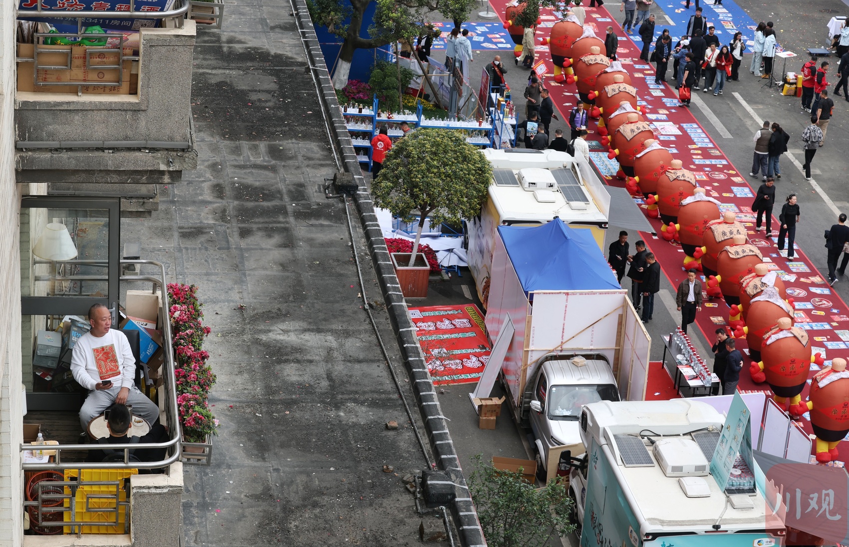 糖酒会锦江宾馆展区,客商(图左下)在酒店阳台洽谈。