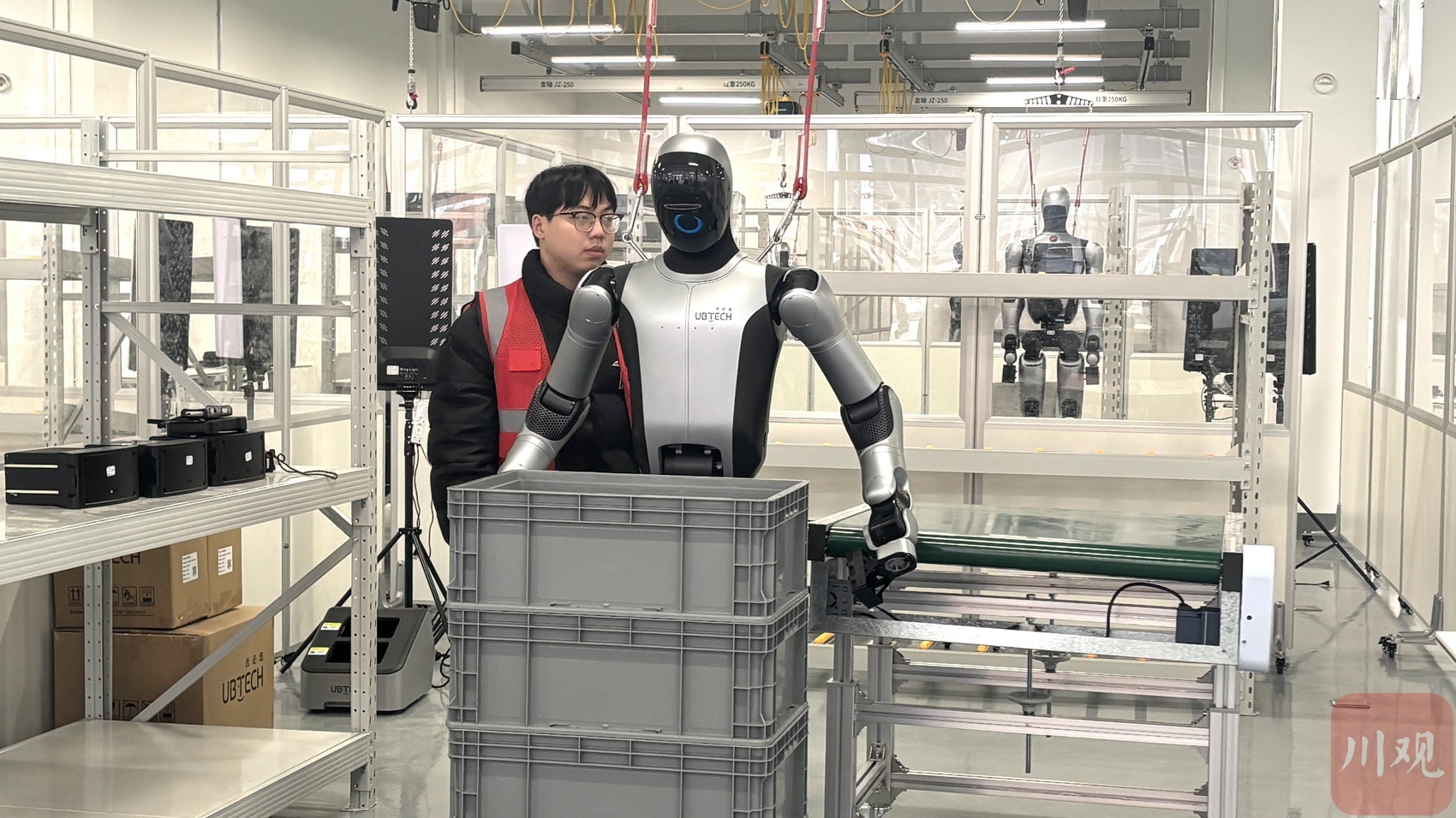 在自贡高新区的一栋厂房内,上百个机器人正在反复练习一套动作:转身前行、识别箱子、抓起、放置。这个被称为“机器人职校”的四川人形机器人多模态数据采集测试中心,由优必选与自贡市共同参与建设,于今年1月8日投运。