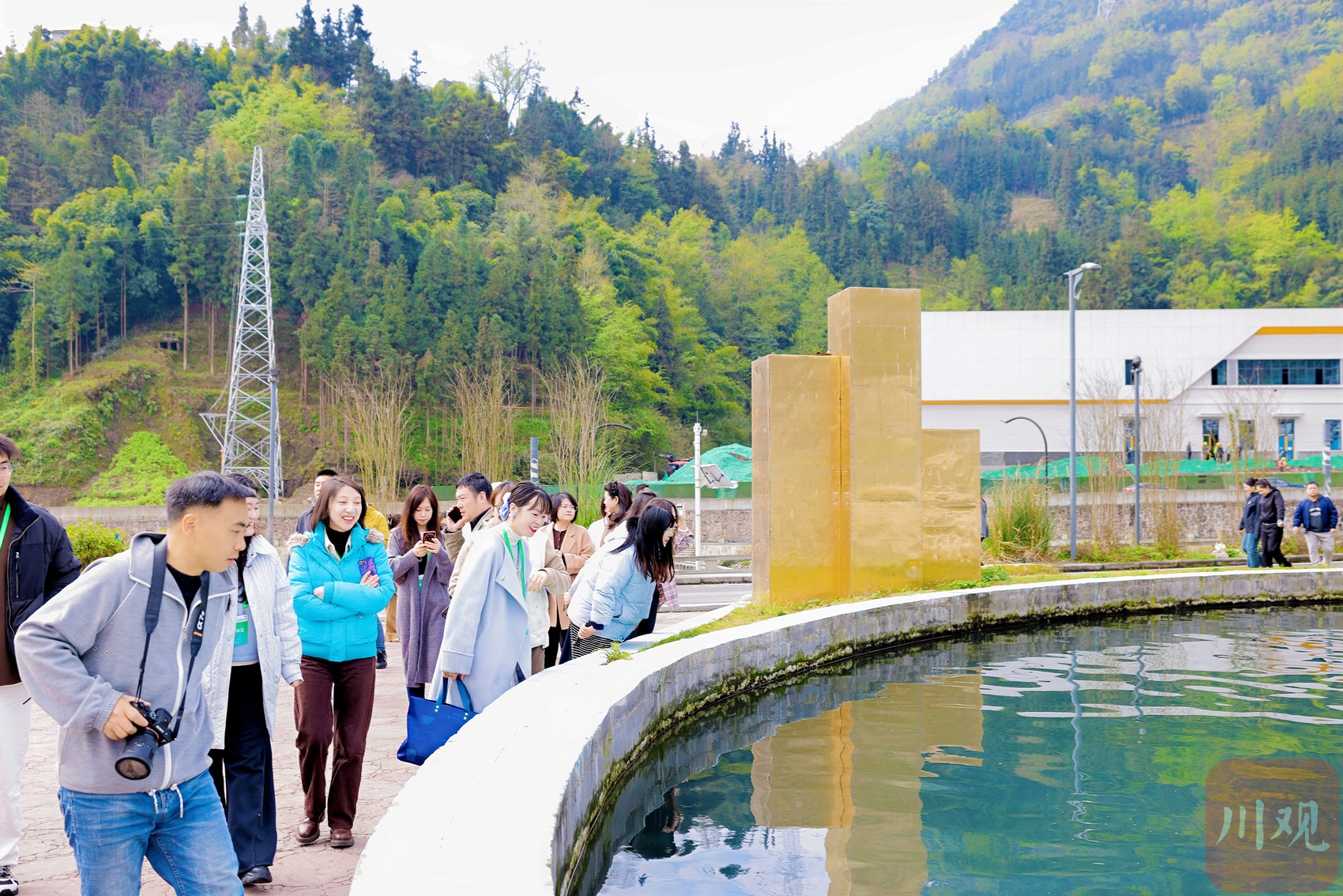 采访团来到天全县鱼子酱特色小镇。