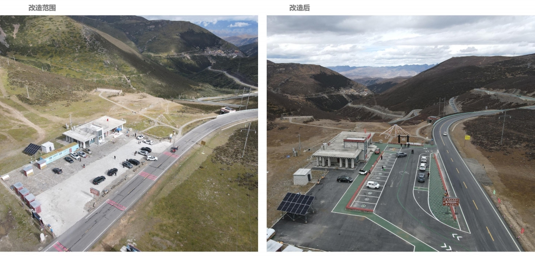 理亚路波瓦山观景台 改造前后对比图。四川省公路规划勘察设计研究院有限公司环境与景观工程分院供图