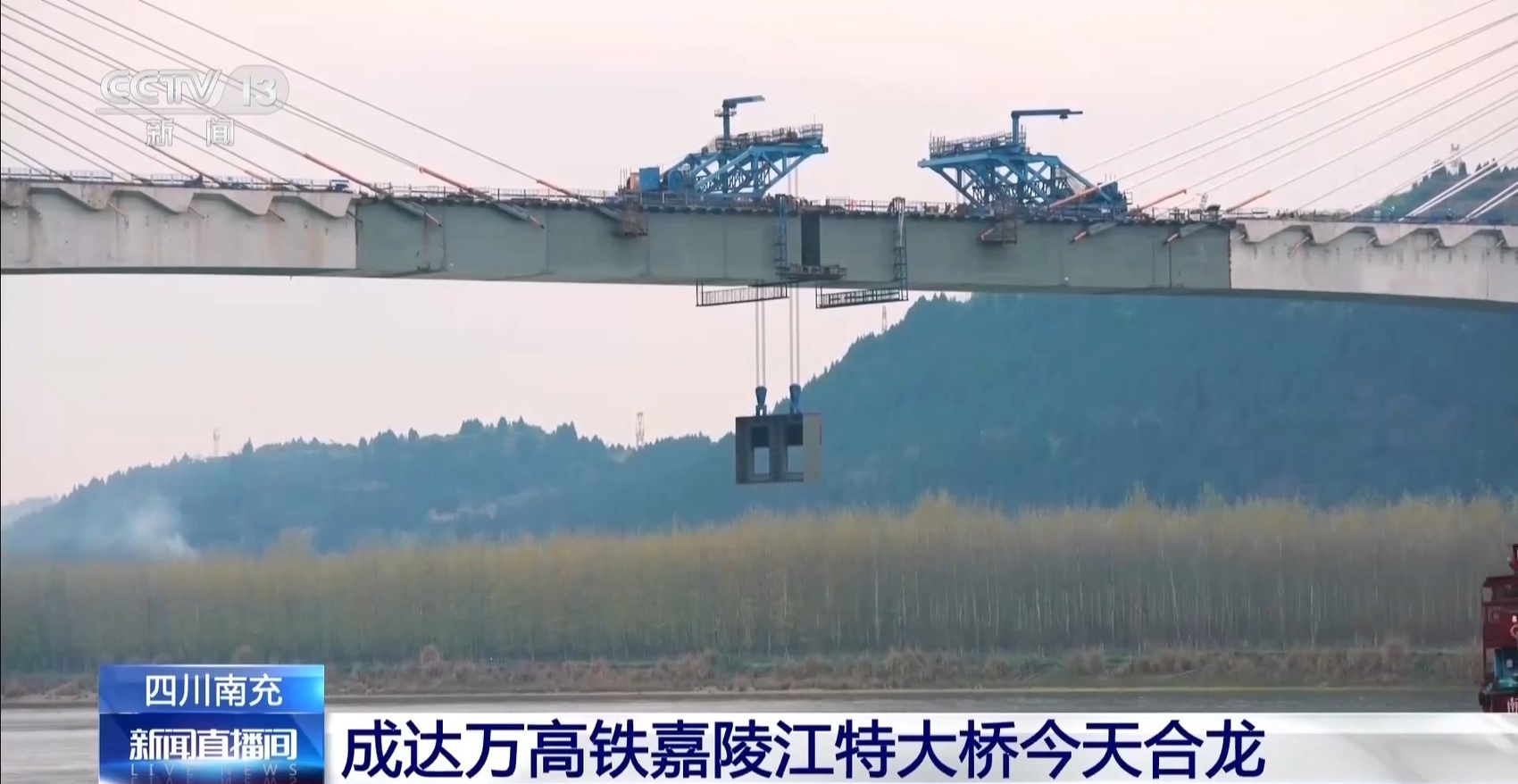 四川成都至达州至重庆万州的成达万高铁,是我国“八纵八横”高铁网沿江通道的重要组成部分。线路建设成后,对四川省打通直达长三角、京津冀经济区高速铁路大通道,构建轨道上的成渝地区双城经济圈具有重要意义。今天(3月25日)上午,成达万高铁嘉陵江特大桥开始吊装最后一片钢桁梁,这也标志着大桥即将全桥合龙。