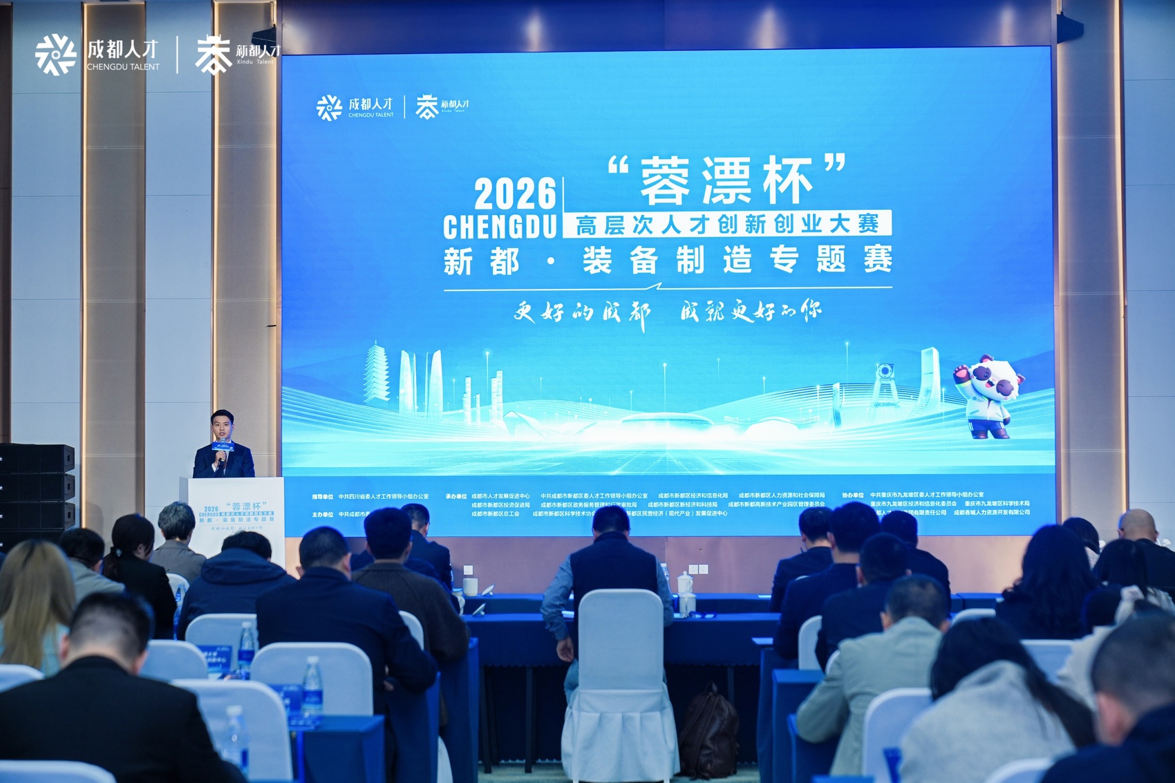 3月25日,2026“蓉漂杯”高层次人才创新创业大赛新都・装备制造专题赛“开战”。紧扣“立园满园、聚才强企”主题,来自成都、深圳、宁波、苏州、重庆等全国各地的195名高层次人才,围绕航空航天、轨道交通、新能源储能、高端装备制造、深地探测等重点领域,组成18个优质项目,现场路演、同台竞技。