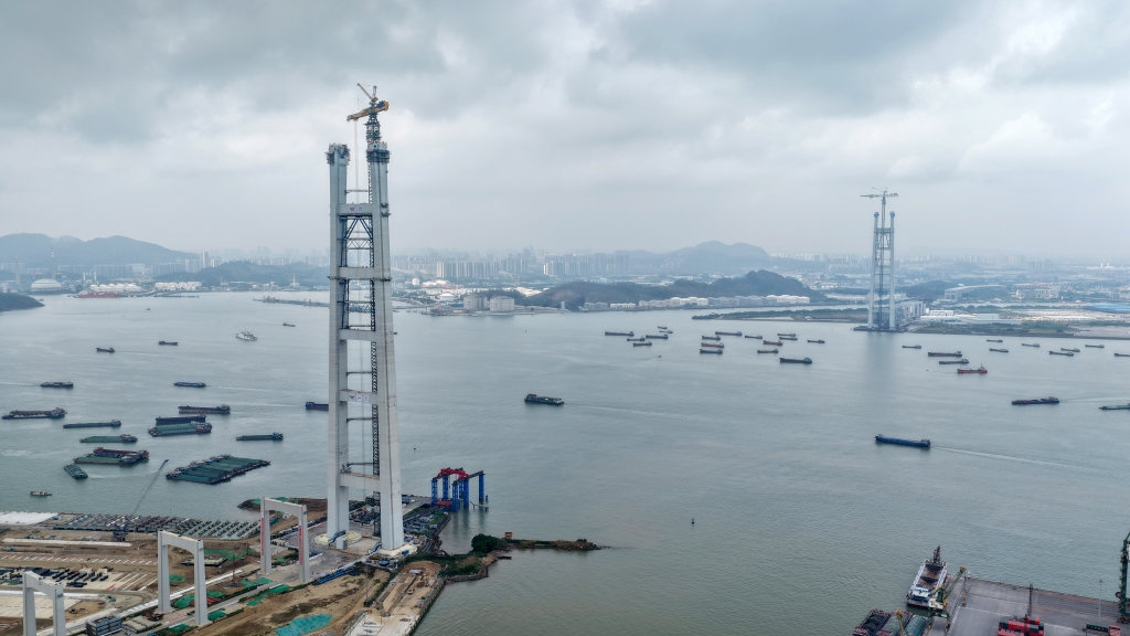 大湾区超级工程狮子洋大桥主塔封顶
