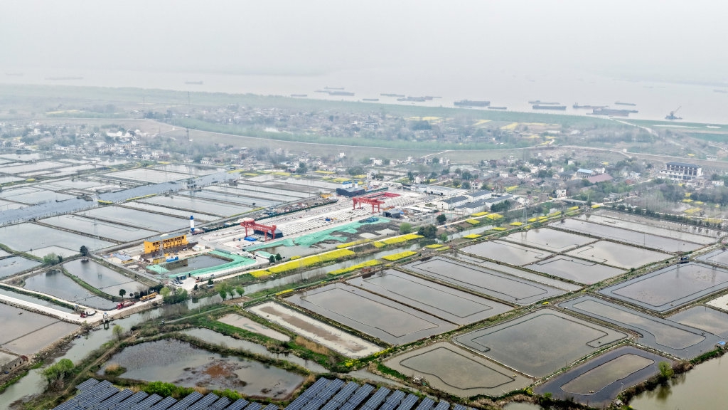 3月26日拍摄的500千伏GIL(气体绝缘输电线路)管廊工程建设现场(无人机照片)。