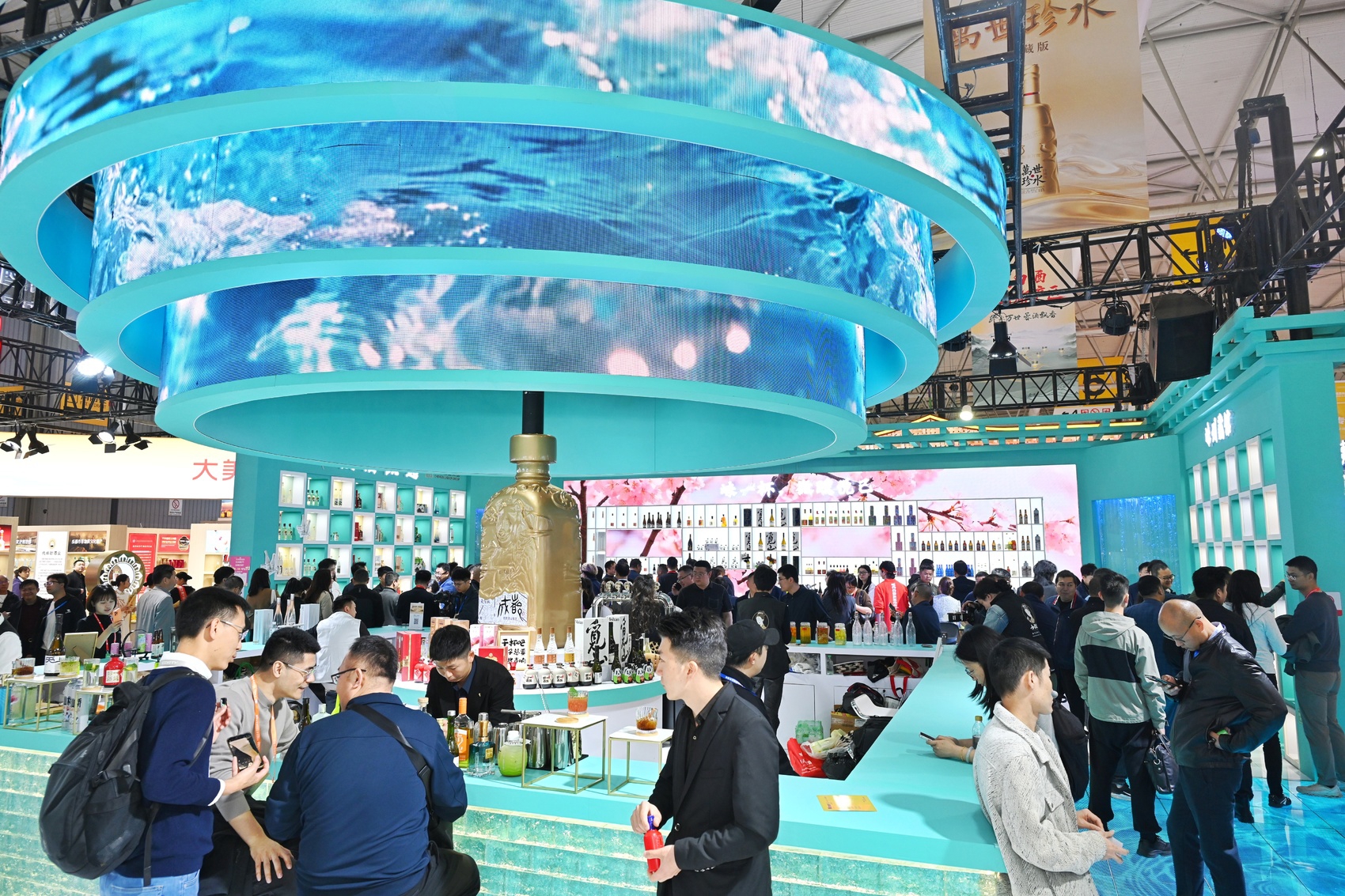 传统白酒、国际烈酒、低度潮饮、果酒、精酿于一体的多元产品矩阵,撑起五个主题专区的优质体验。记者注意到,馆内既有水井坊、金六福等知名传统白酒品牌,也有崃州、回澜等国际烈酒新势力,更有众多聚焦新酒饮的创新品牌,形成了各美其美、美美与共“雨林式”酒品生态。