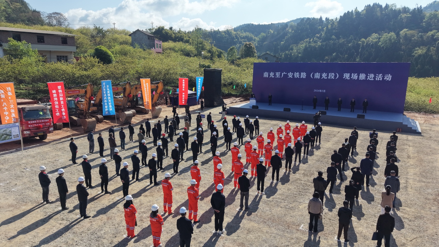 3月27日,四川在线记者从南充市发展和改革委获悉,新建南充至广安铁路(简称“南广高铁”)(南充段)现场推进活动3月26日在南充市高坪区举行,全线最长隧道、重难点工程金宝山隧道启动建设,预计2028年下半年实现贯通。