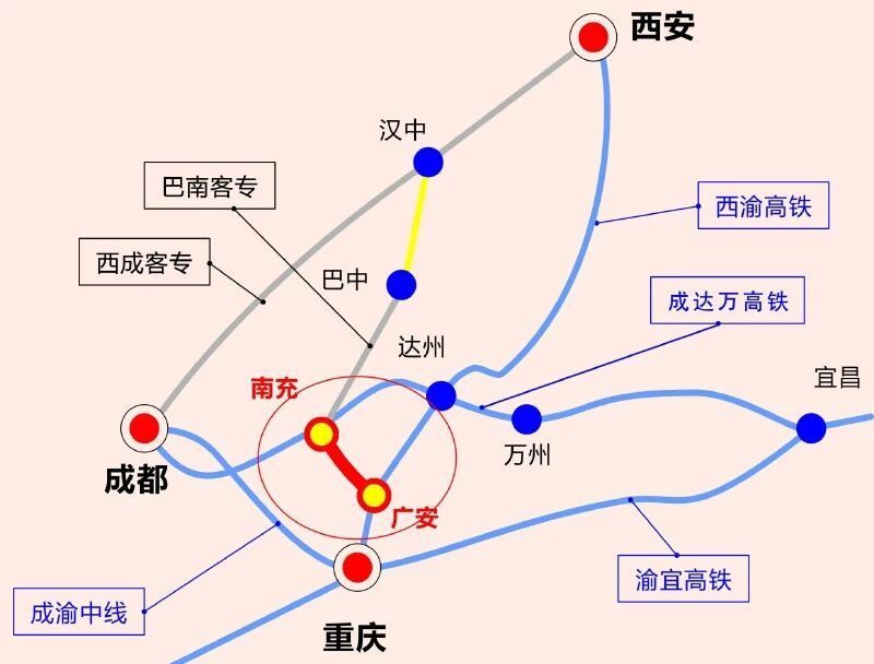 “尽管成达万高铁与西渝高铁在川东的达州南站交会,但以南充市民前往广安为例,要绕行达州,需要多跑200公里。”南充市发展和改革委相关负责人为记者算了笔时间账: