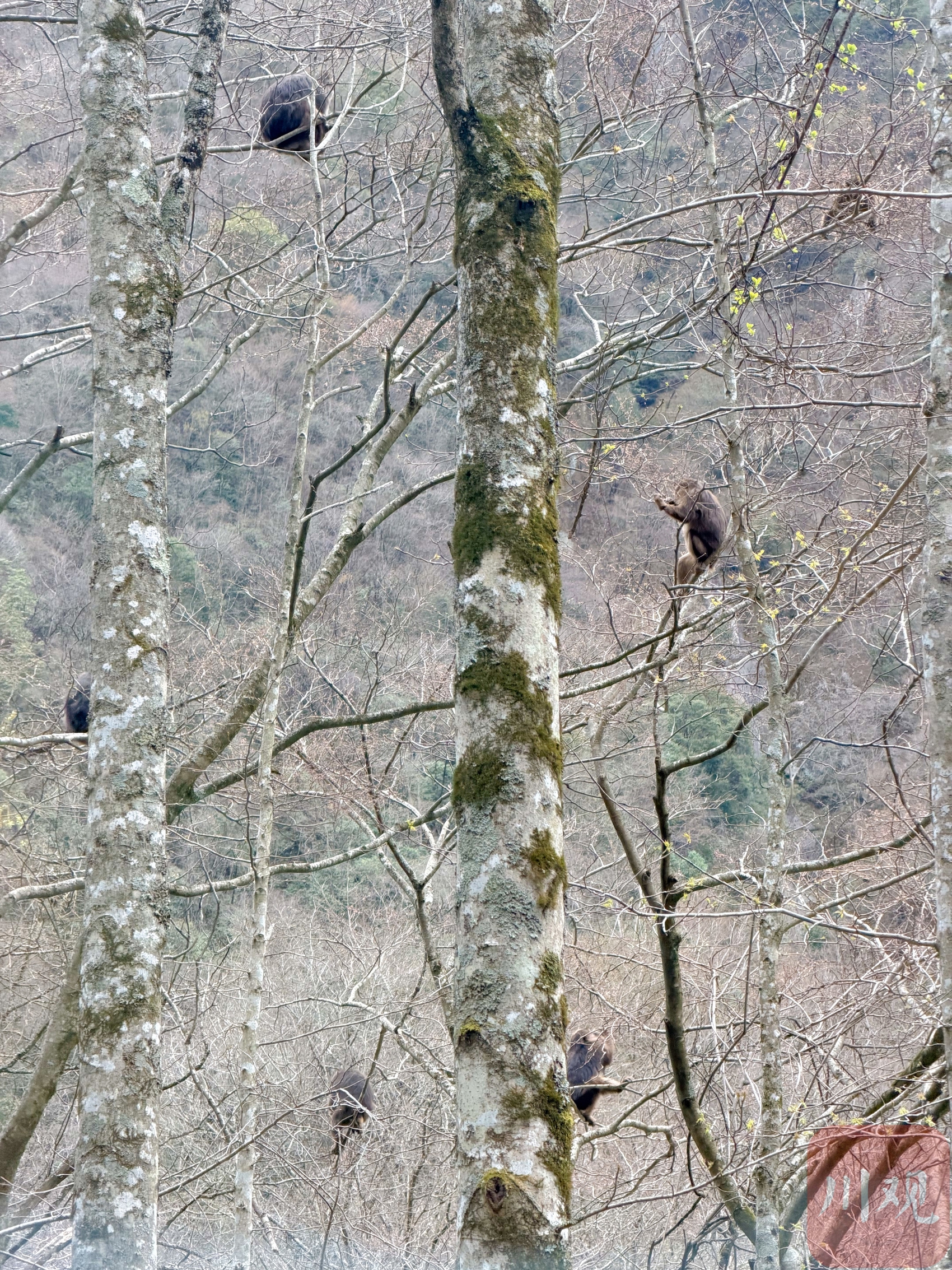 在唐家河国家级自然保护区,偶遇一群藏酋猴。