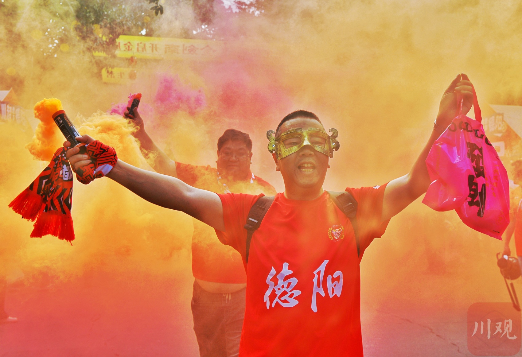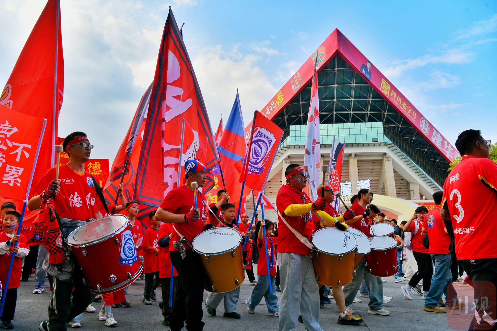 “几十元买件雄起服,为德阳扎起!”市民刘先生周末特意带着儿子来到体育场,准备为家乡球队呐喊助威。像刘先生一样的球迷不在少数,“德阳雄起!”的呐喊声此起彼伏,伴随着激昂的锣鼓声,整装待发的德阳球迷们将战前的鼓点擂得愈发响亮,共同期待德阳重装队在主场打出风采,赢得胜利。