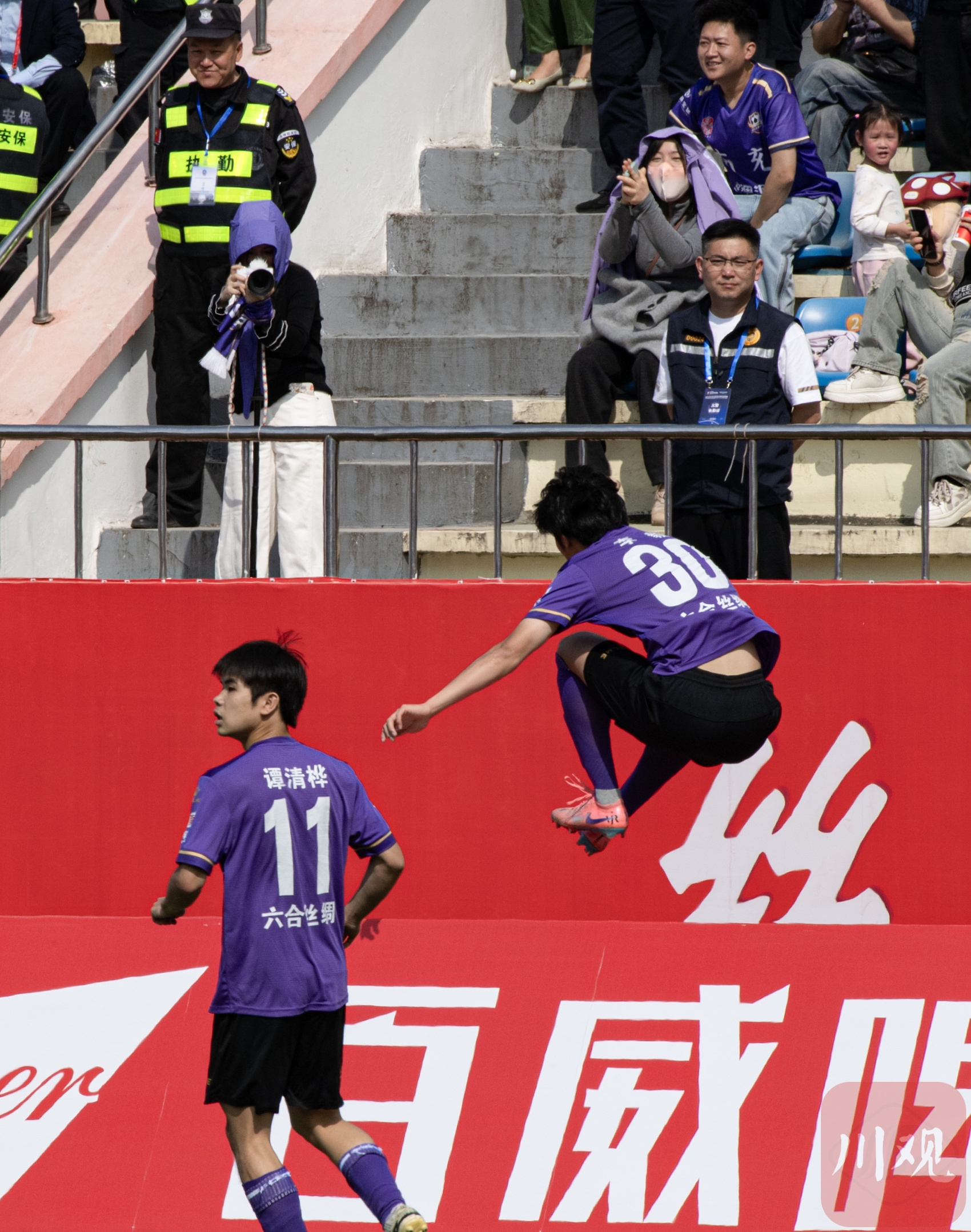自贡灯城燊龙队迎战凉山州队比赛进行中,在场外的第二观赛现场聚集了许多为主队加油的球迷。C视觉签约摄影师 秦燕萍