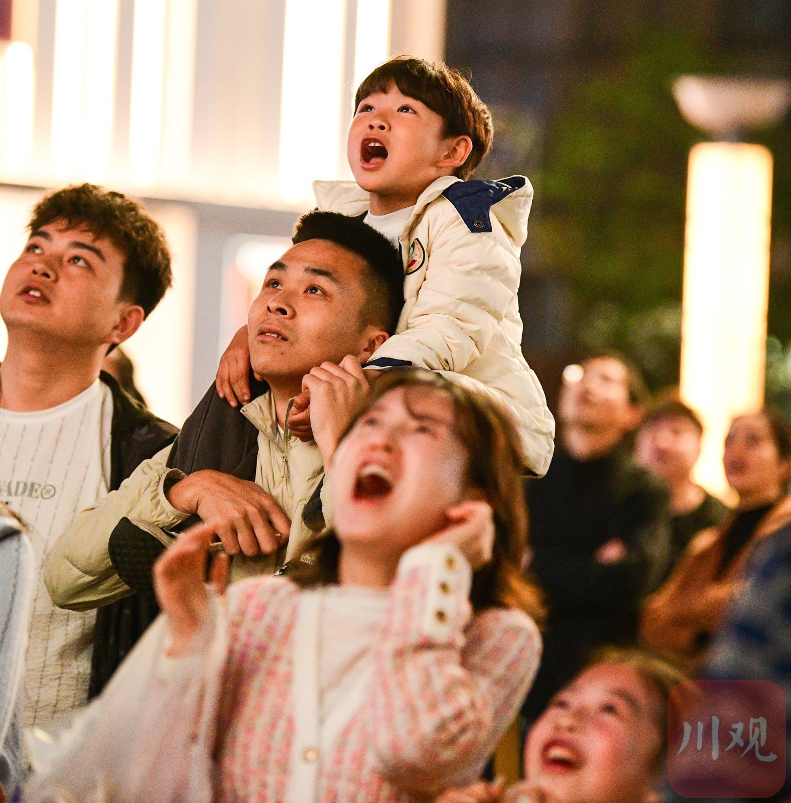 自贡灯城燊龙队迎战凉山州队比赛进行中,在场外的第二观赛现场,一家三口忘情地为球队加油。C视觉签约摄影师 秦燕萍
