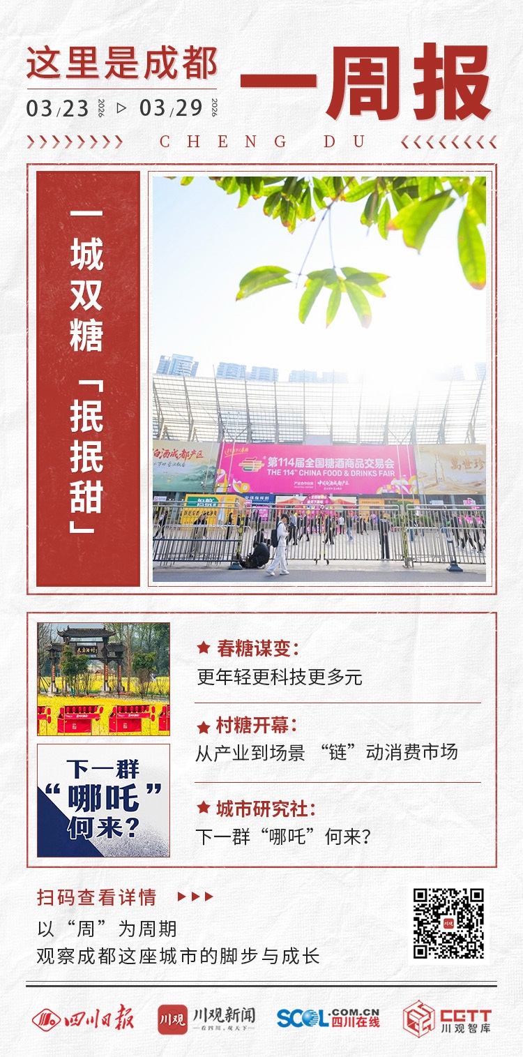这一周,成都开启了“抿抿甜”模式——3月26日,114届全国糖酒商品交易会在成都启幕。第二天,成都首届“村糖会”开幕,以一城双糖实践为城市高质量发展写下生动注脚。