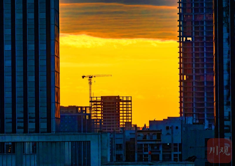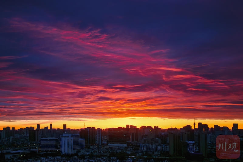 3月30日清晨,成都城区朝霞漫天,城市楼宇沐浴在晨光之中。C视觉签约摄影师 龚全意