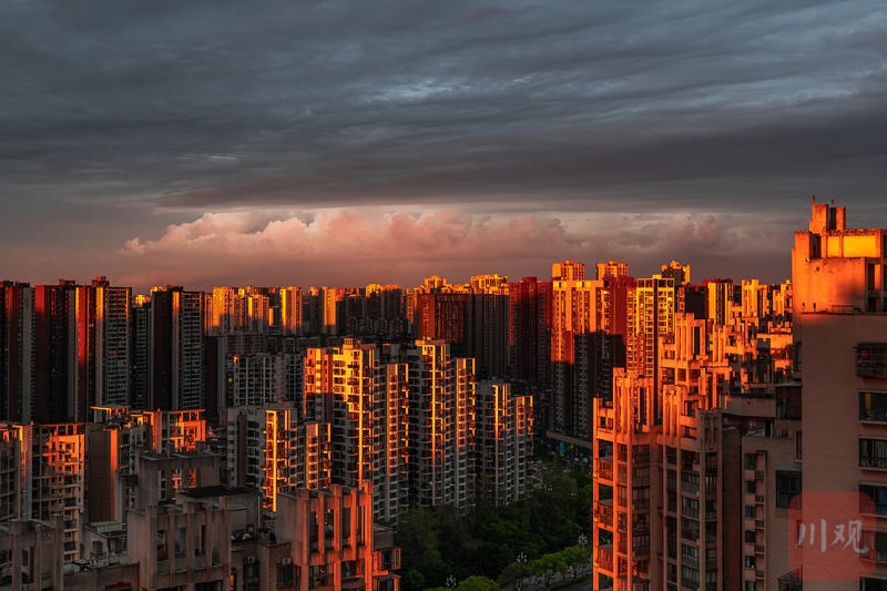3月30日清晨,成都城区朝霞漫天,城市楼宇沐浴在晨光之中。C视觉签约摄影师 雷云