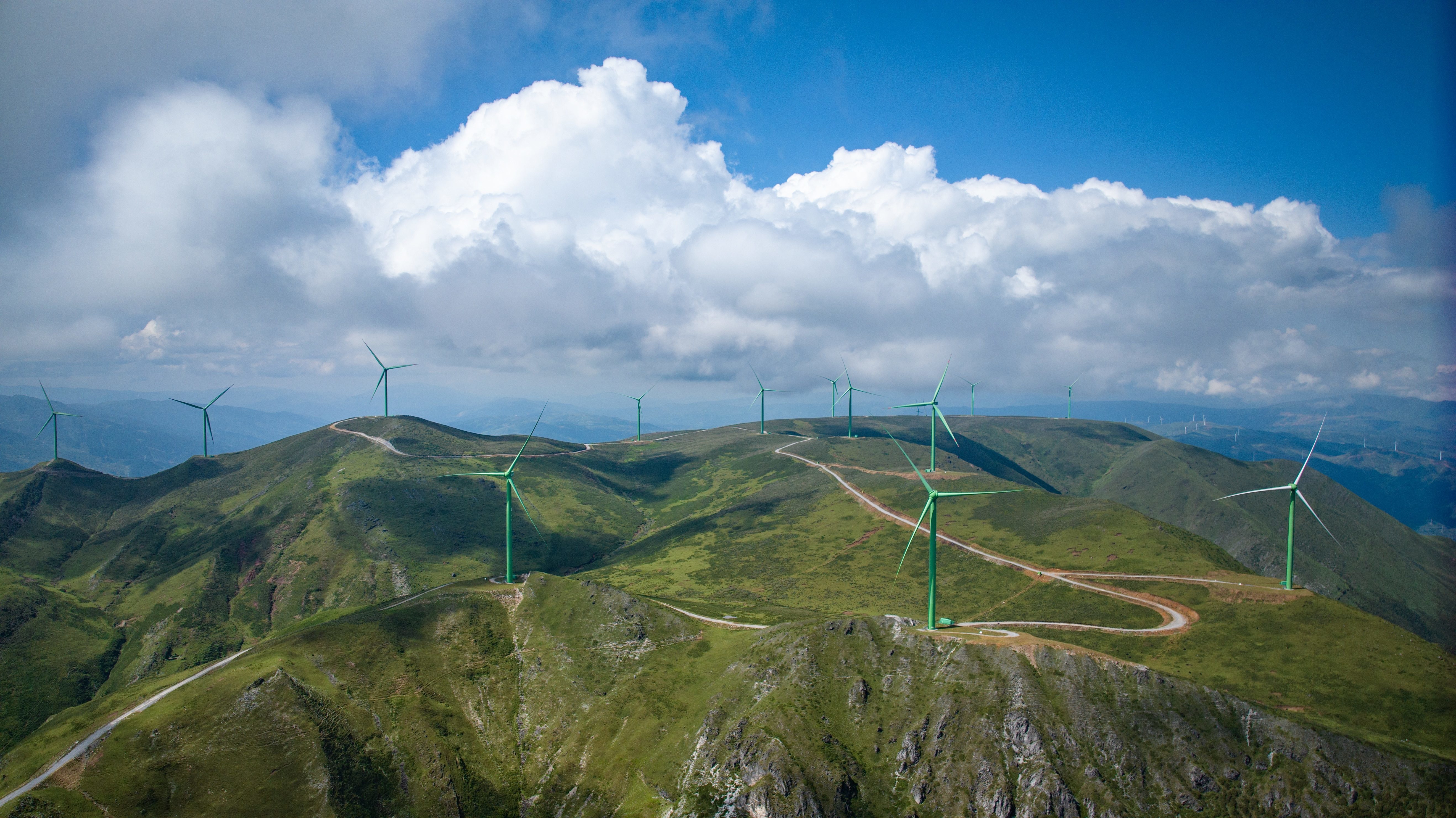 攀西地区清洁能源资源丰富,图为海拔3100米的凉山州布拖县特木里镇风电场。陈世煜 摄