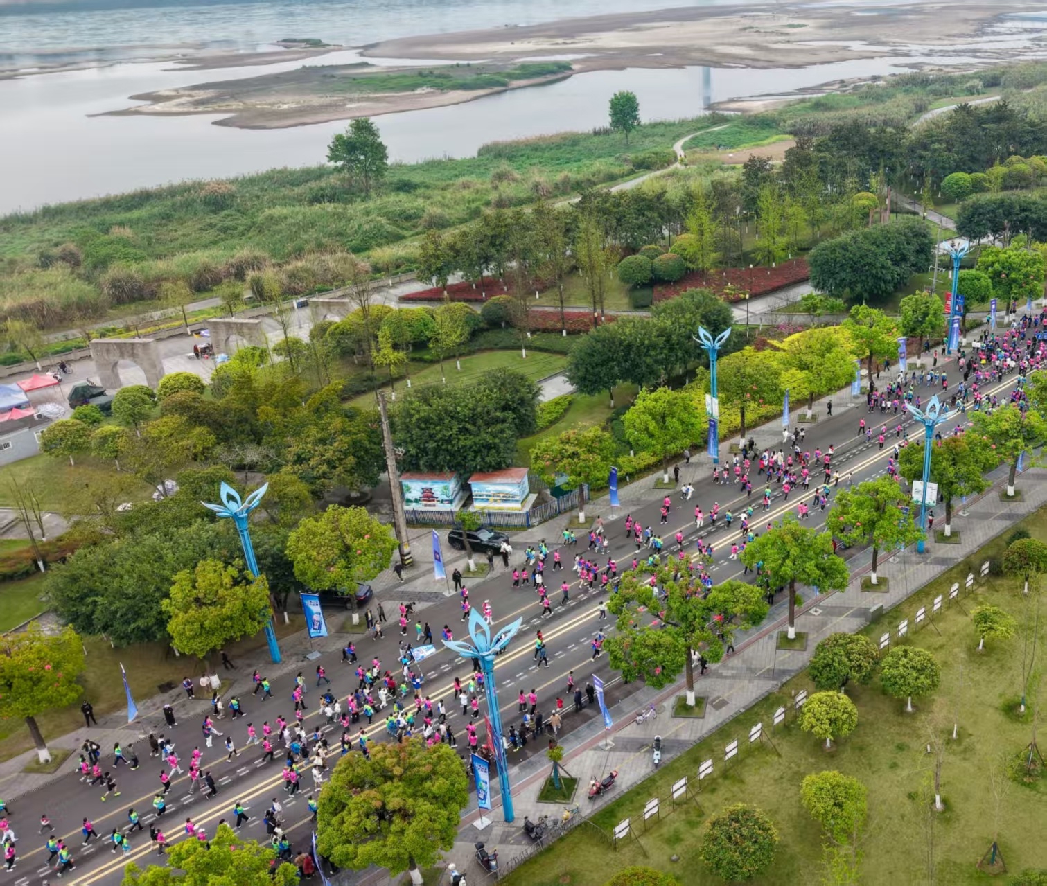 赛道的观赏性,是这场赛事的一大亮点。南溪站的赛道依环长江生态绿廊而建,让跑者在竞技中饱览滨江生态之美。其中6公里健身走体验赛沿北滨路、滨江路蜿蜒前行;10公里精英挑战赛则穿行于滨江生态体育公园、欢乐田园等城市地标。