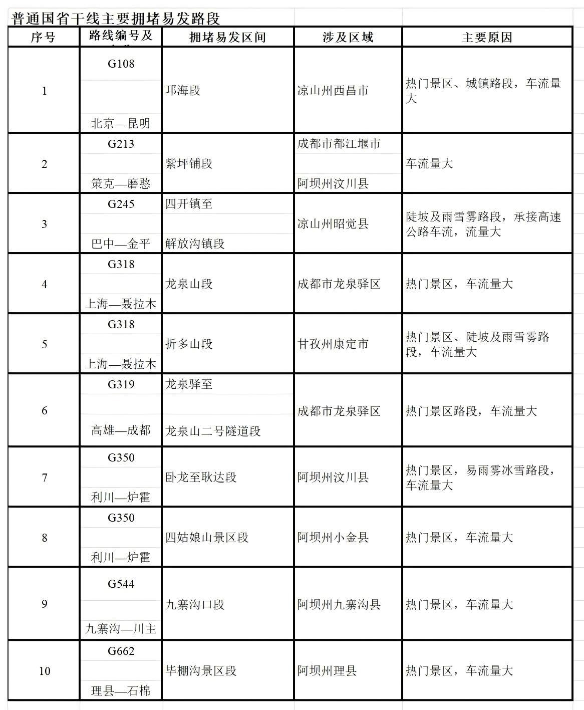 此外,报告还梳理了部分拥堵易发路段,请重点关注: