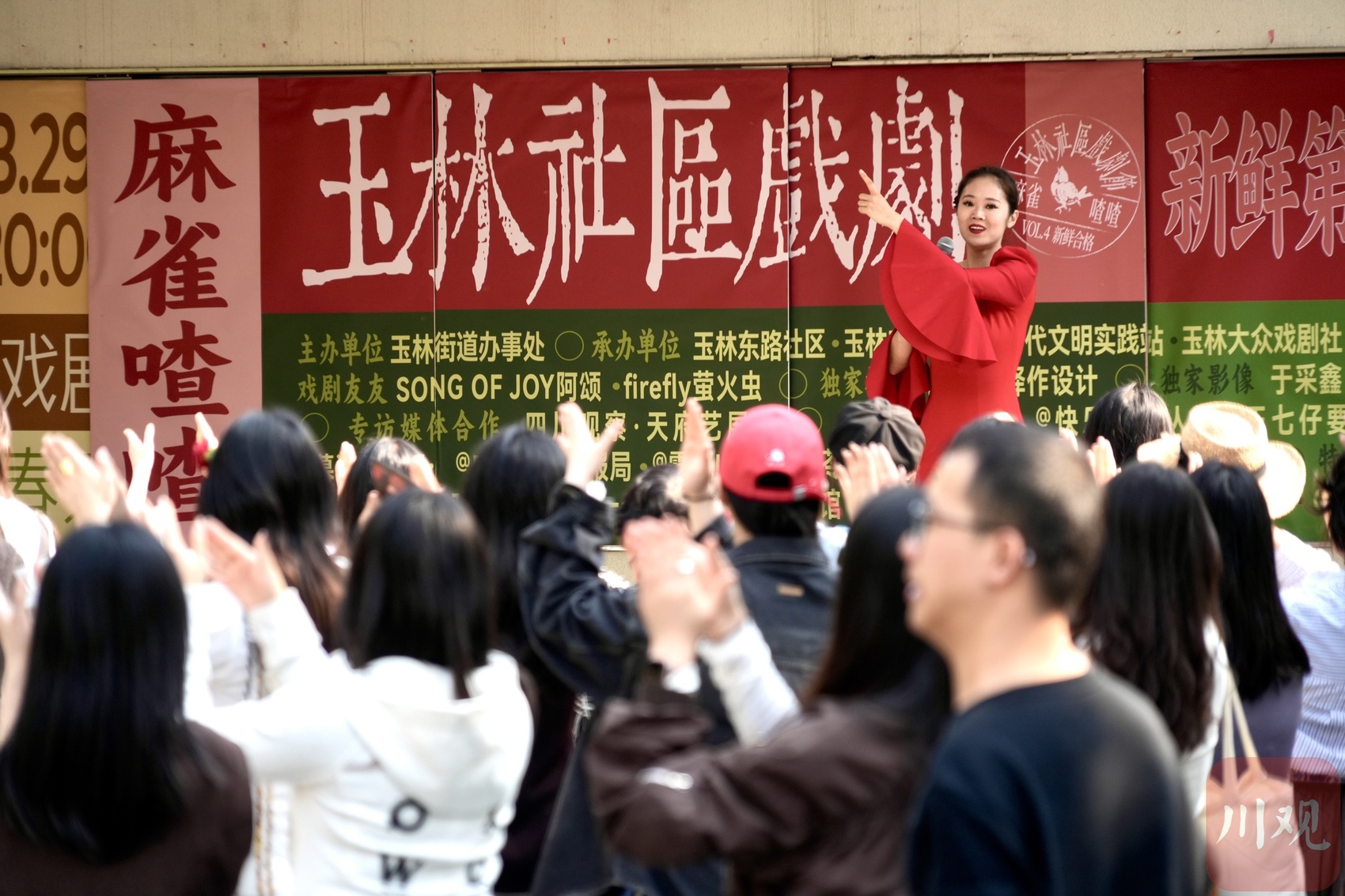 3月29日,成都市武侯区玉林社区广场上人群涌动,来自全国各地的戏剧创作人和爱好者齐聚这里,与社区居民一同深入广场与街巷,共享属于街巷和邻里的戏剧聚会。当日,成都市武侯区玉林社区戏剧节正如火如荼地进行。