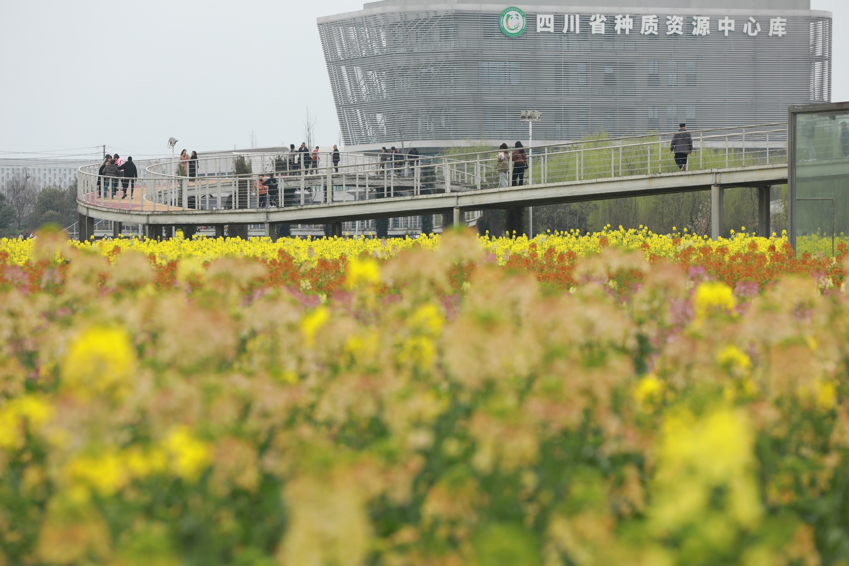 3月23日下午,成都市新津区天府农博园内,当大多数油菜已进入结荚期,一片依旧盛开的深黄色油菜花成为一道靓丽风景。成都市农林科学院科技处处长付绍红告诉记者:“这片油菜田栽种的是我们团队选育的‘长花100’早花油菜品种。从去年12月下旬至今,花期已超过100天,从冬季到春季都有花可赏。”