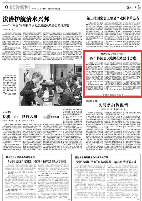 今年以来,四川持续加大电网投资建设力度,已新开工包括攀西特高压工程在内的21个基建项目,完成电网建设投资超50亿元,加快推动构建新型电力系统和新型能源体系。