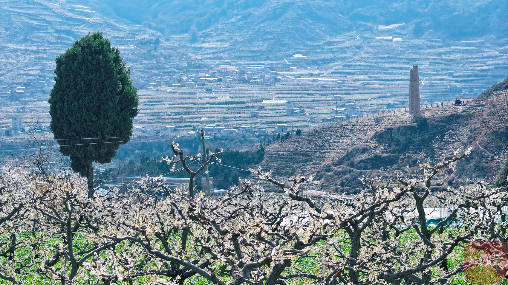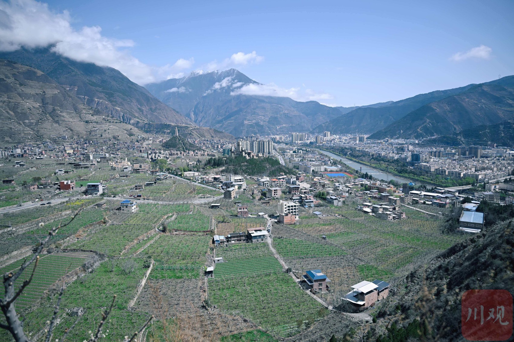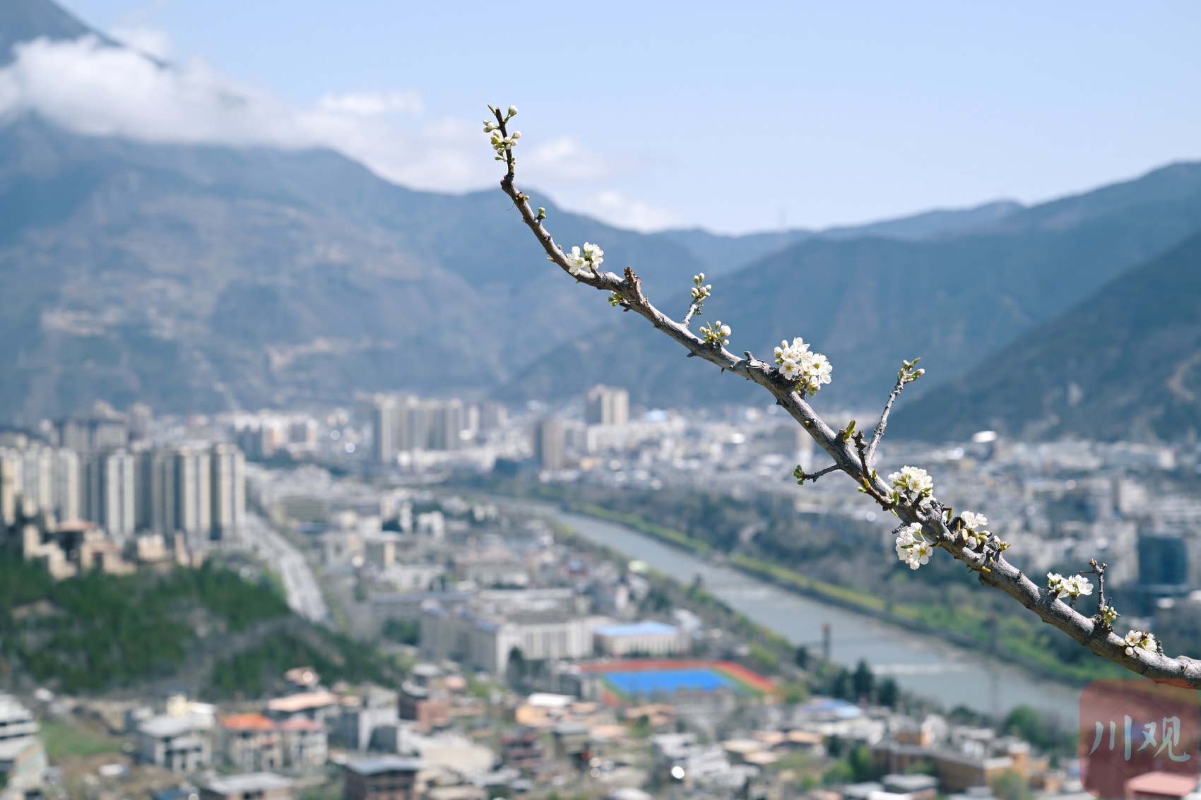 盛放的李花与茂县县城