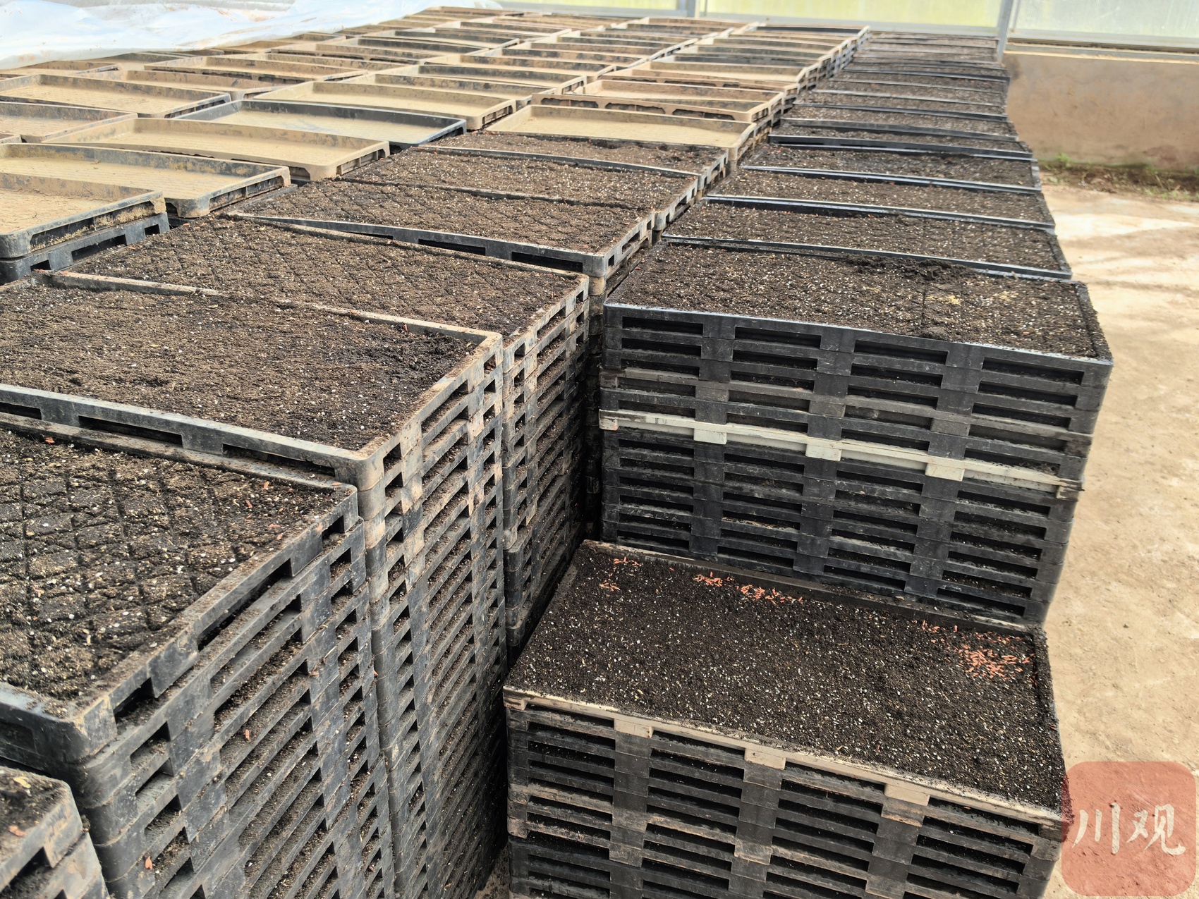 完成播种的秧盘。