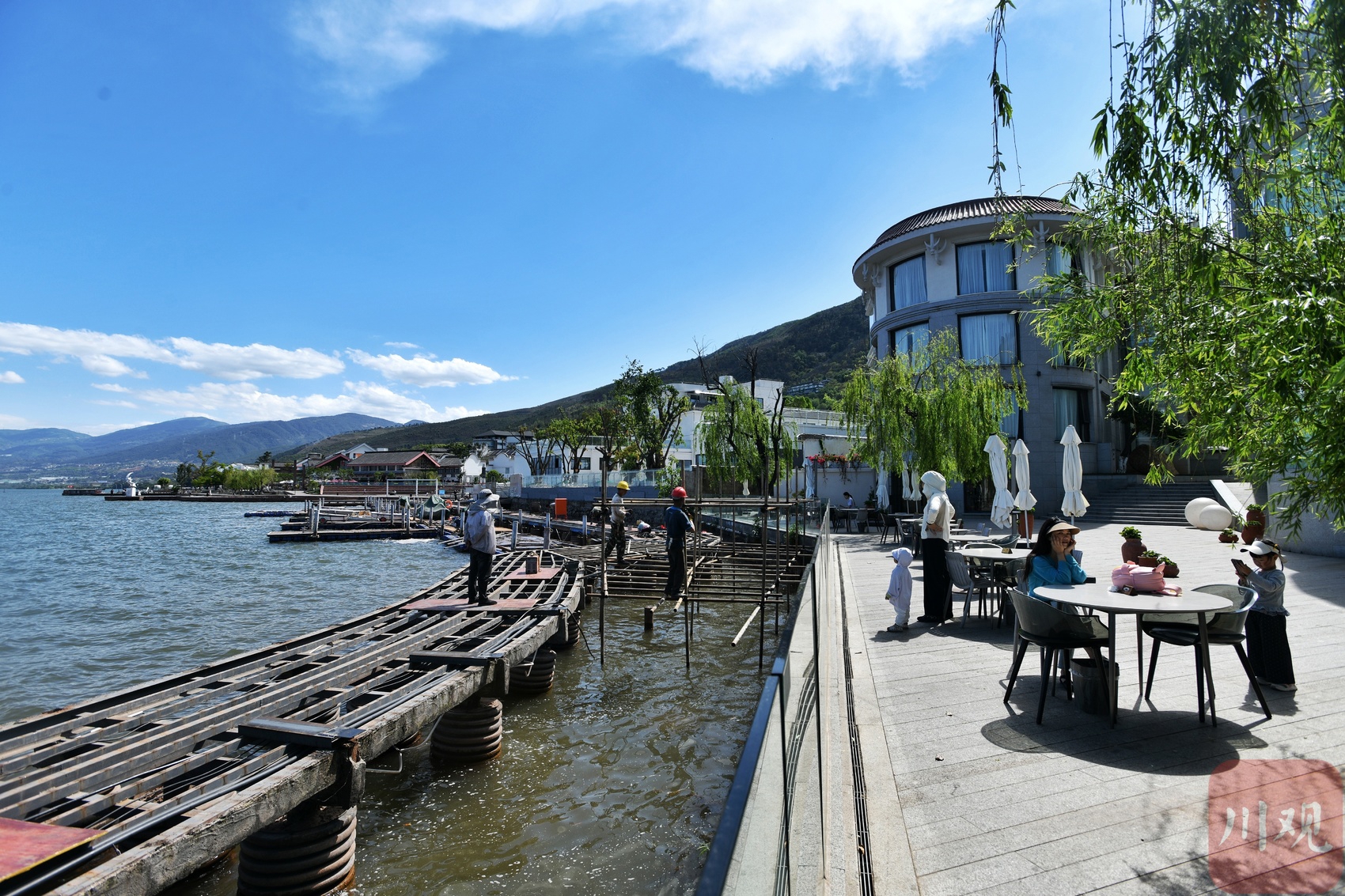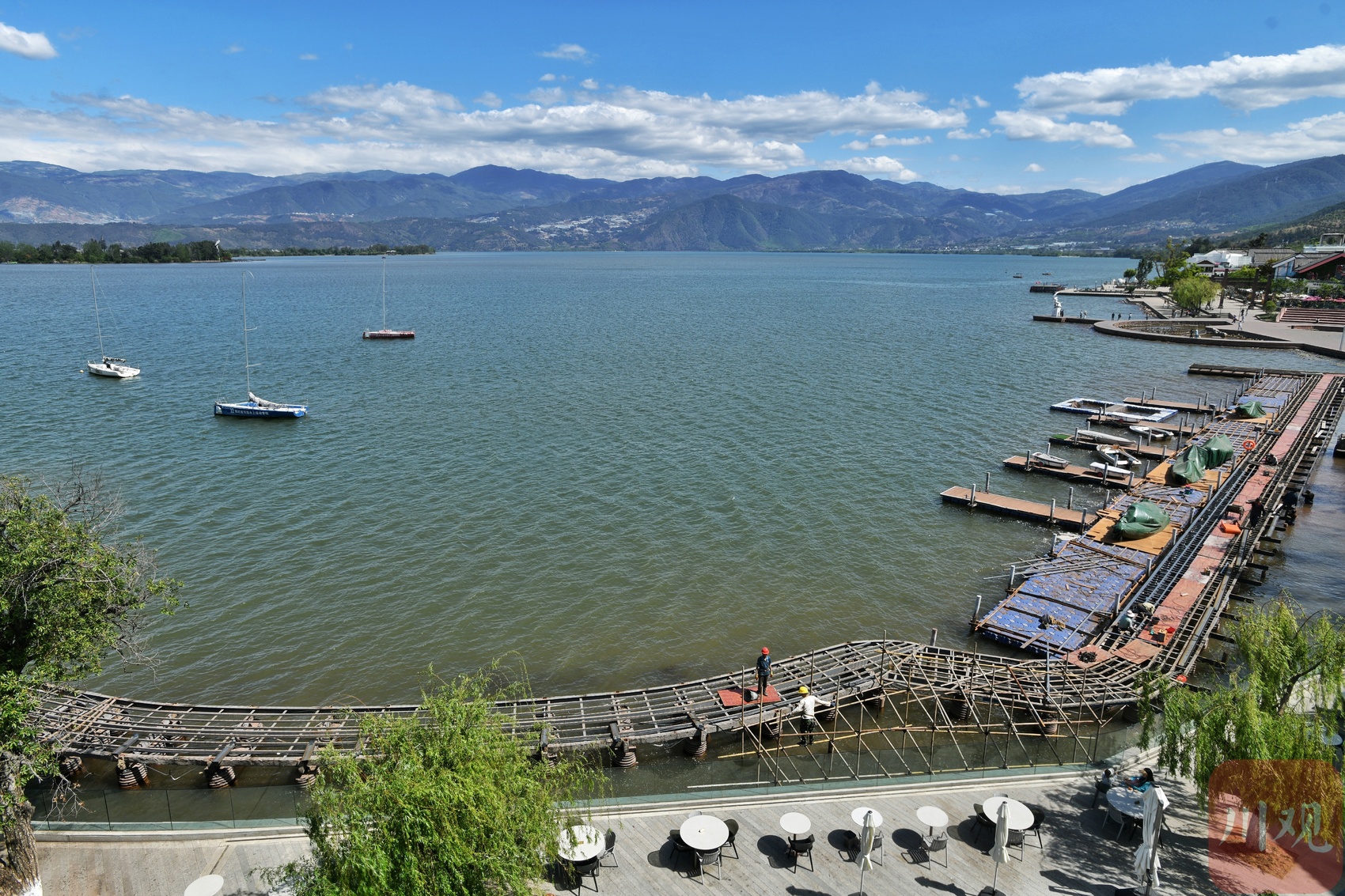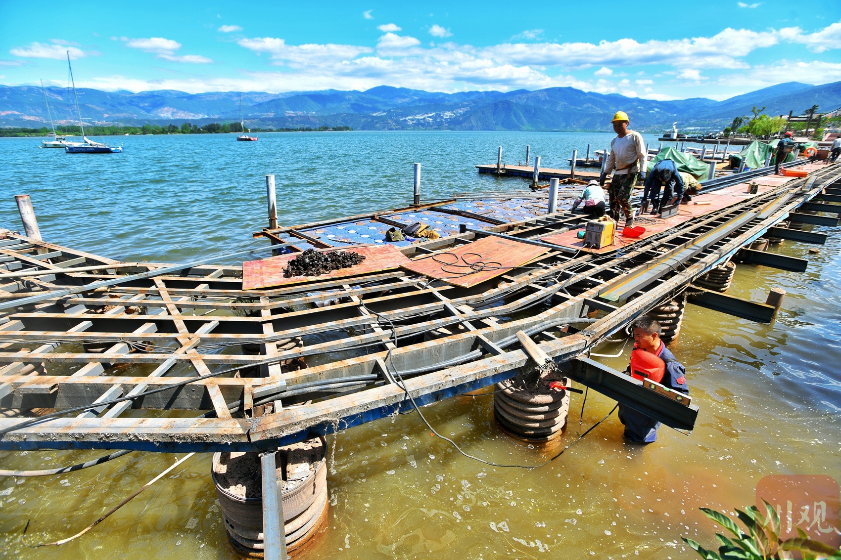 邛海边的栈桥施工现场。
