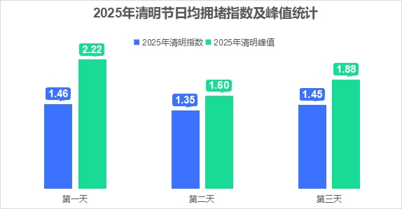 从2025年清明假期前一天交通运行情况来看,城区白天时段、早高峰、晚高峰拥堵指数均值分别为1.69、1.51、2.49,较2025年3月星期五拥堵指数均值分别上升5.62%、下降4.43%、上升7.33%。