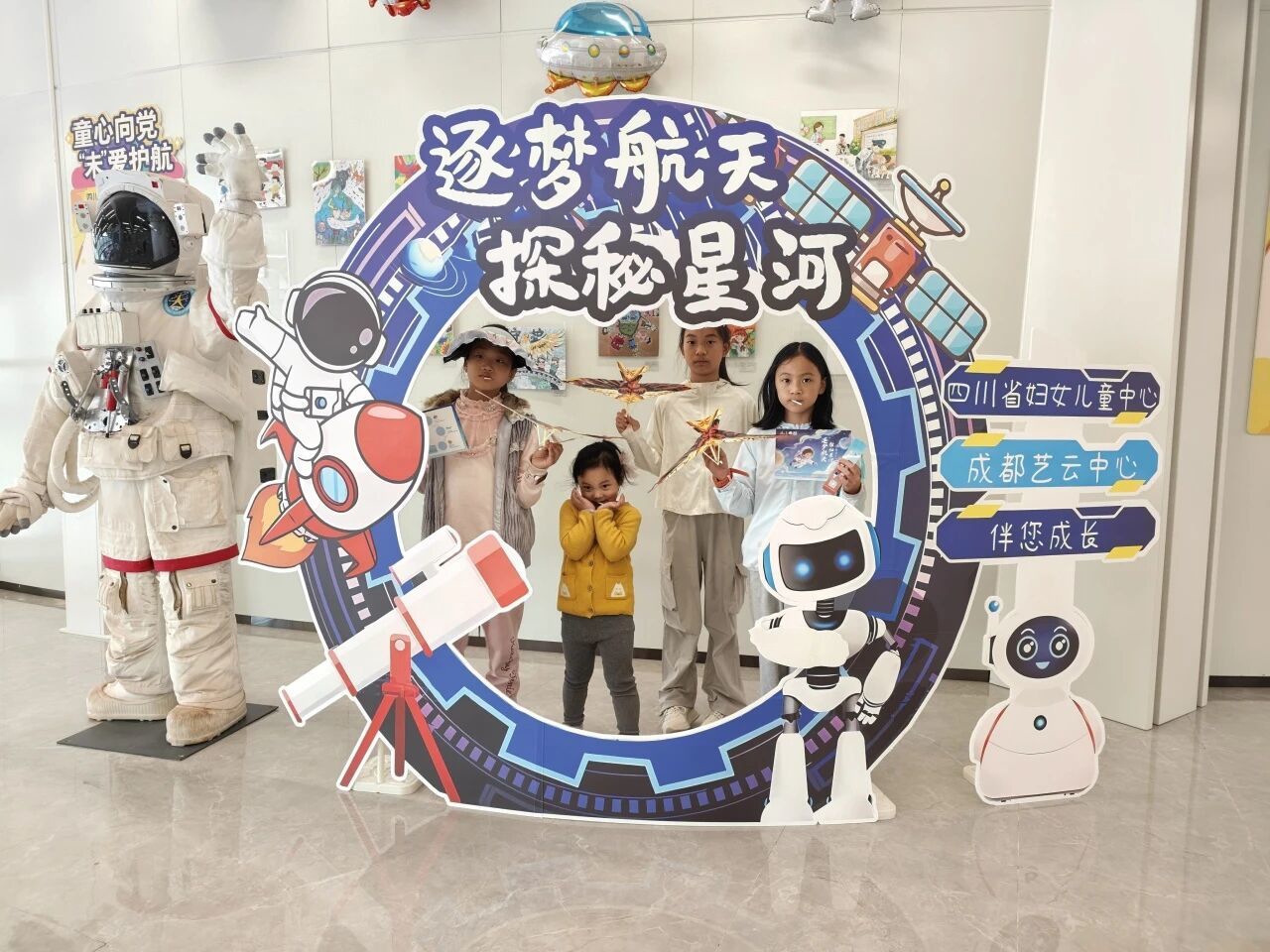 当天,由四川省妇女儿童中心等打造的“逐梦航天·探秘星河”航天主题季春假系列活动同步启幕,吸引了众多亲子家庭打卡探索。活动现场设置了丰富的体验环节,亲子家庭通过线上线下打卡领取航天书签、VR体验券,参与盲盒抽奖。此外,火星馆科普讲解同步开展,为小朋友们生动解锁航天小知识,播下航天梦想的种子。