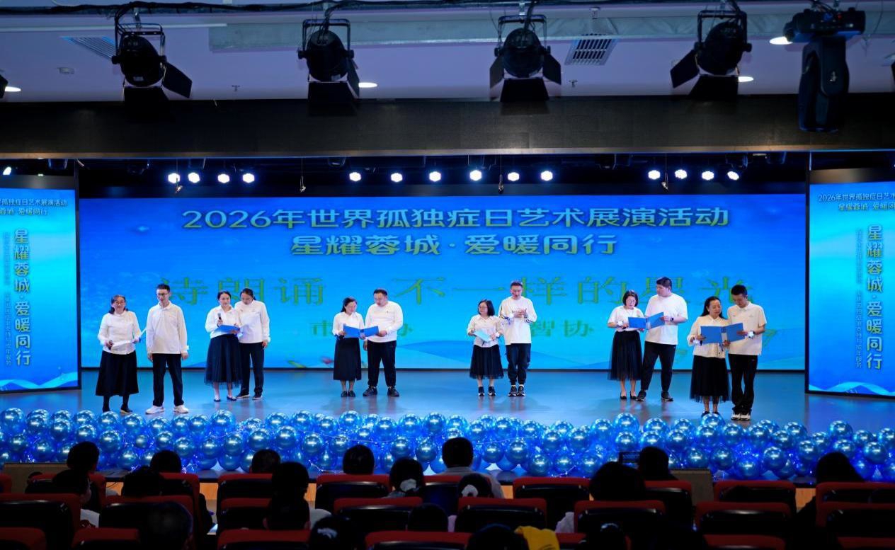 2026年4月2日,在成都市残联、锦江区残联和锦江区民政局的指导下,由成都市精神残疾人及亲友协会(以下简称成都市精协)、成都市智力残疾人及亲友协会(以下简称成都市智协)联合成都市残疾人康复托养指导中心、锦江区精神残疾人及亲友协会、锦江区智力残疾人及亲友协会主办的“星耀蓉城·爱暖同行”2026年世界孤独症日艺术展演在成都市文化馆举行。成都市残联、市残疾人康托指导中心、锦江区残联、锦江区民政局等单位,以及华西医院心理卫生中心张骏教授团队的相关负责人出席活动。