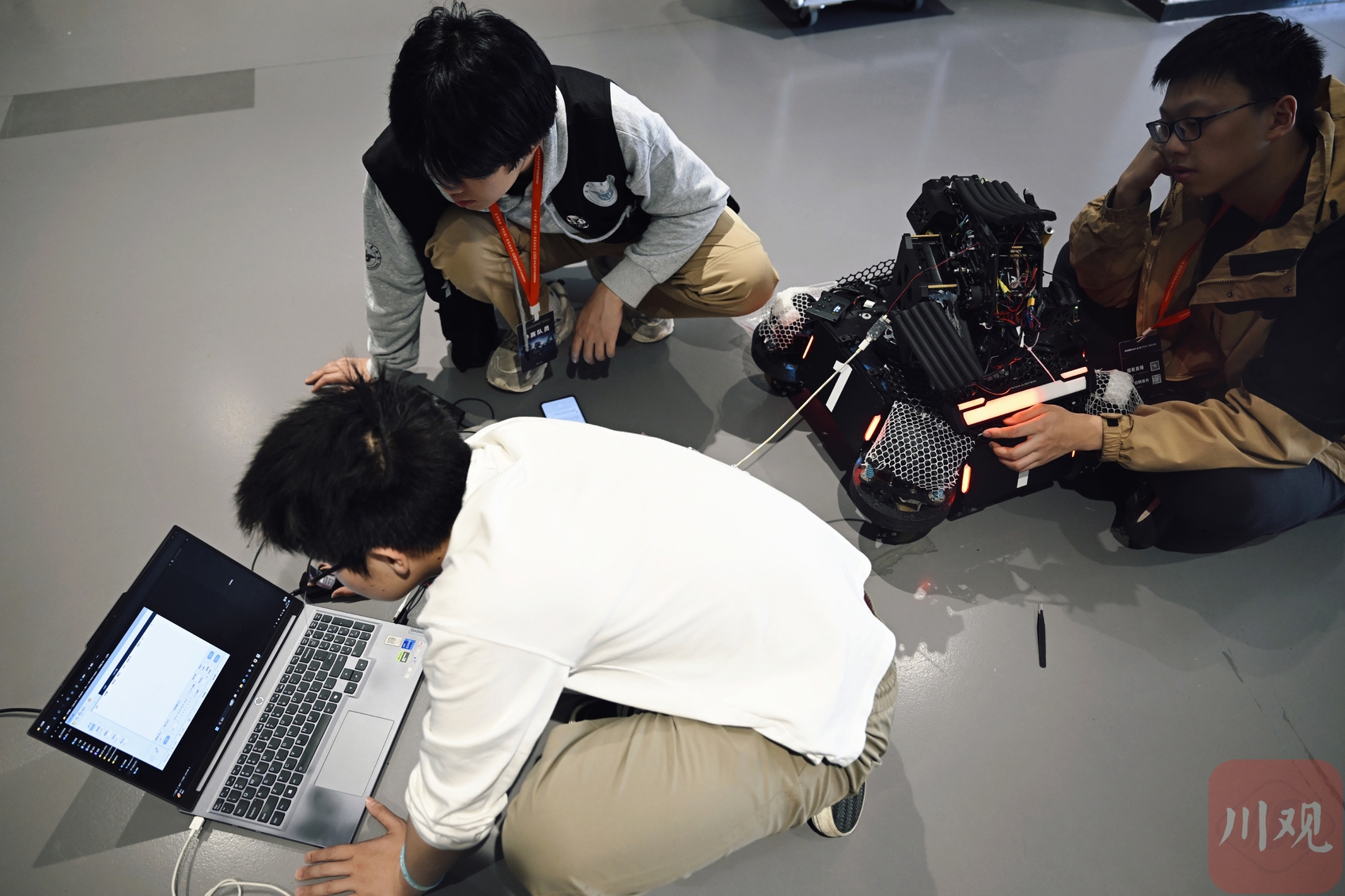 比赛开始前,参赛选手对机器人进行调试
