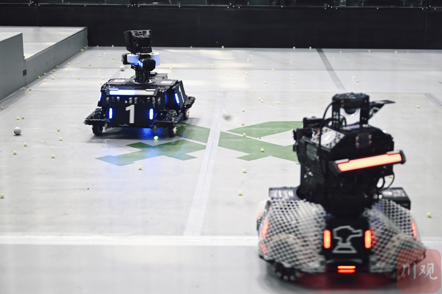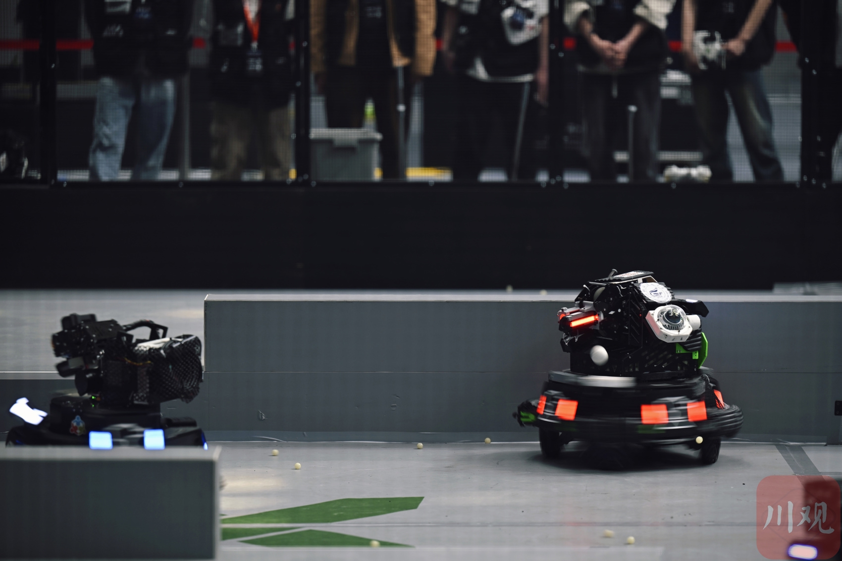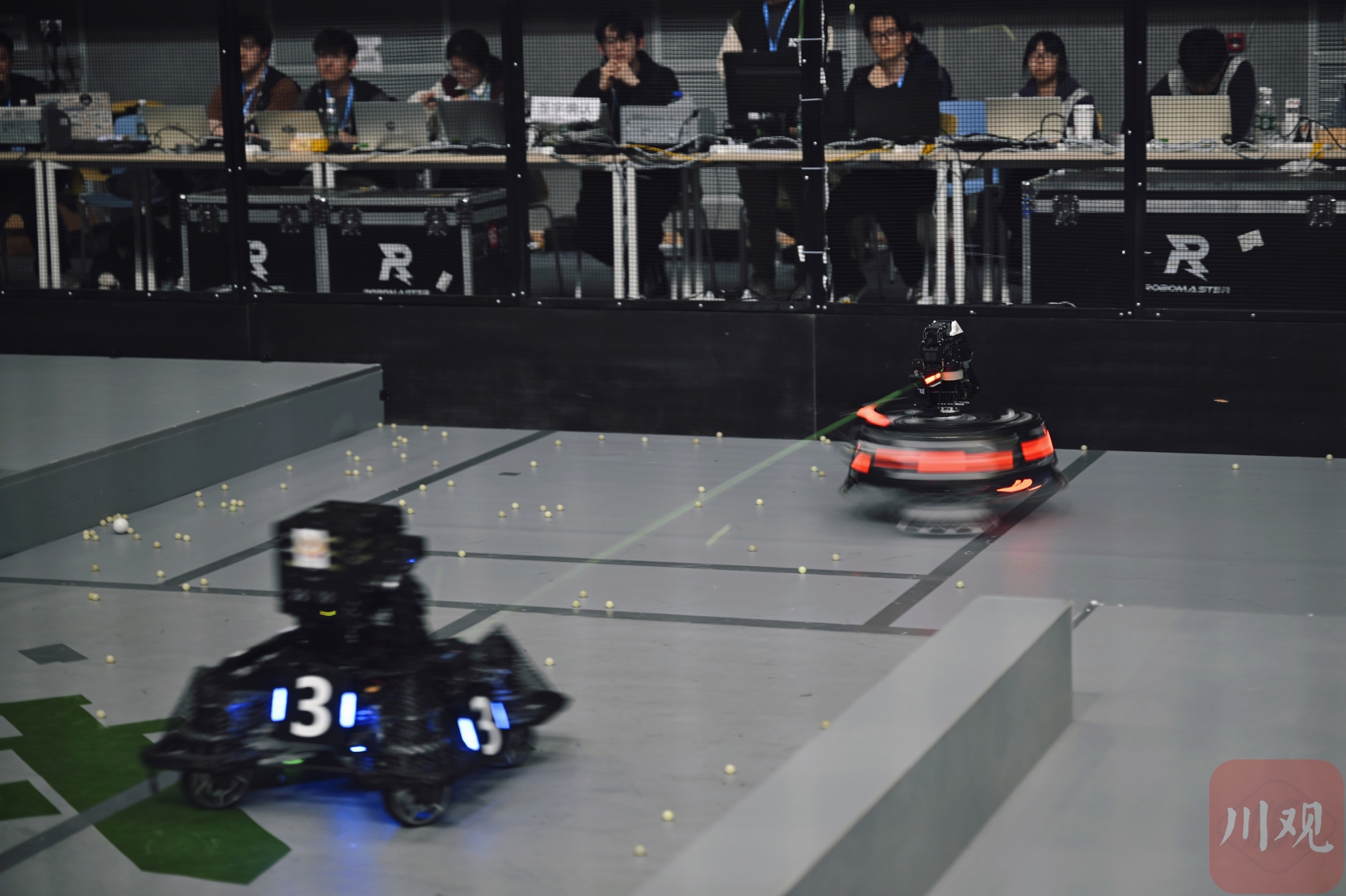 比赛开始前,参赛选手和机器人在候场区等待