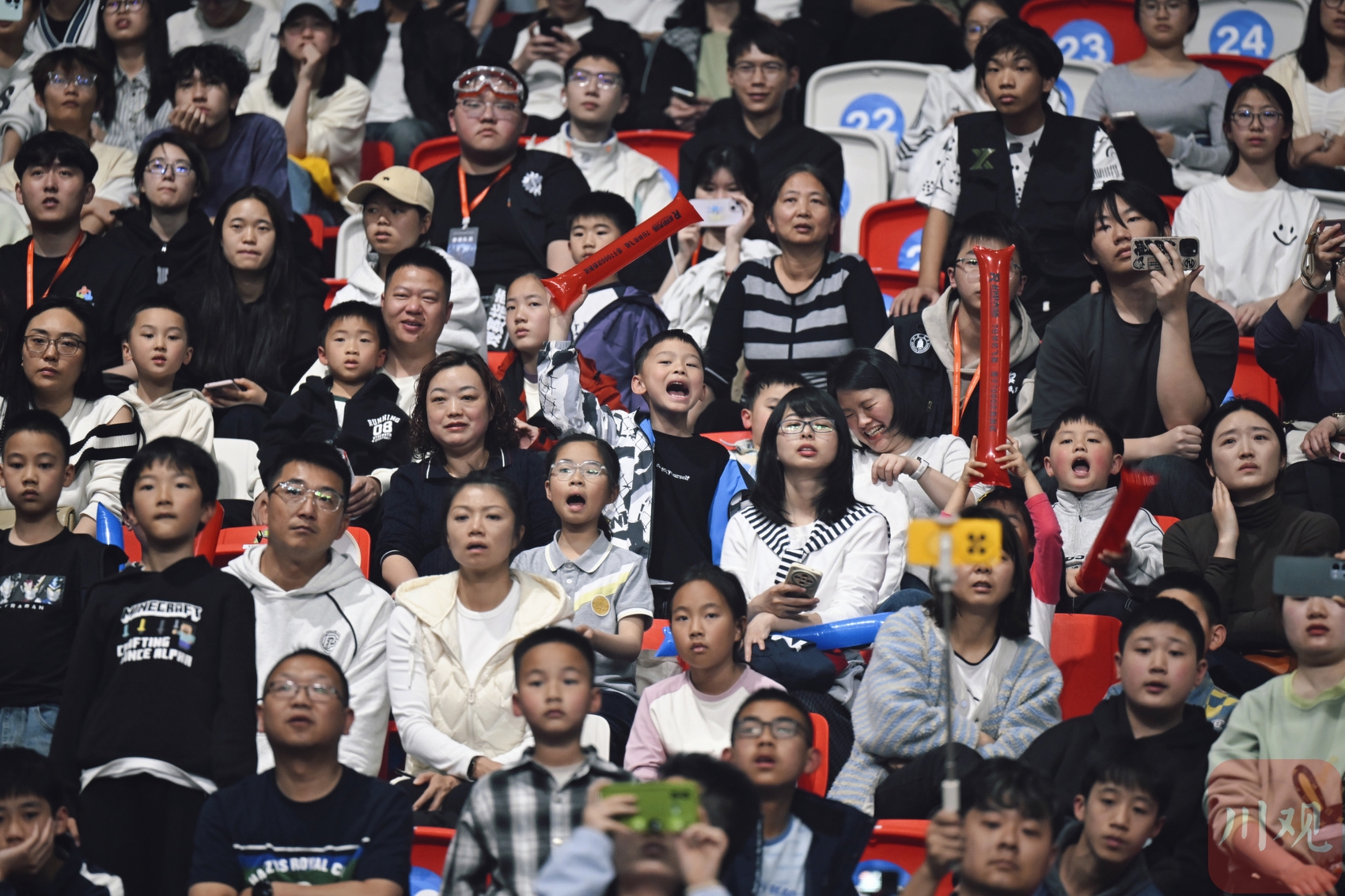 恰逢春假,不少家长带着孩子前来观看比赛