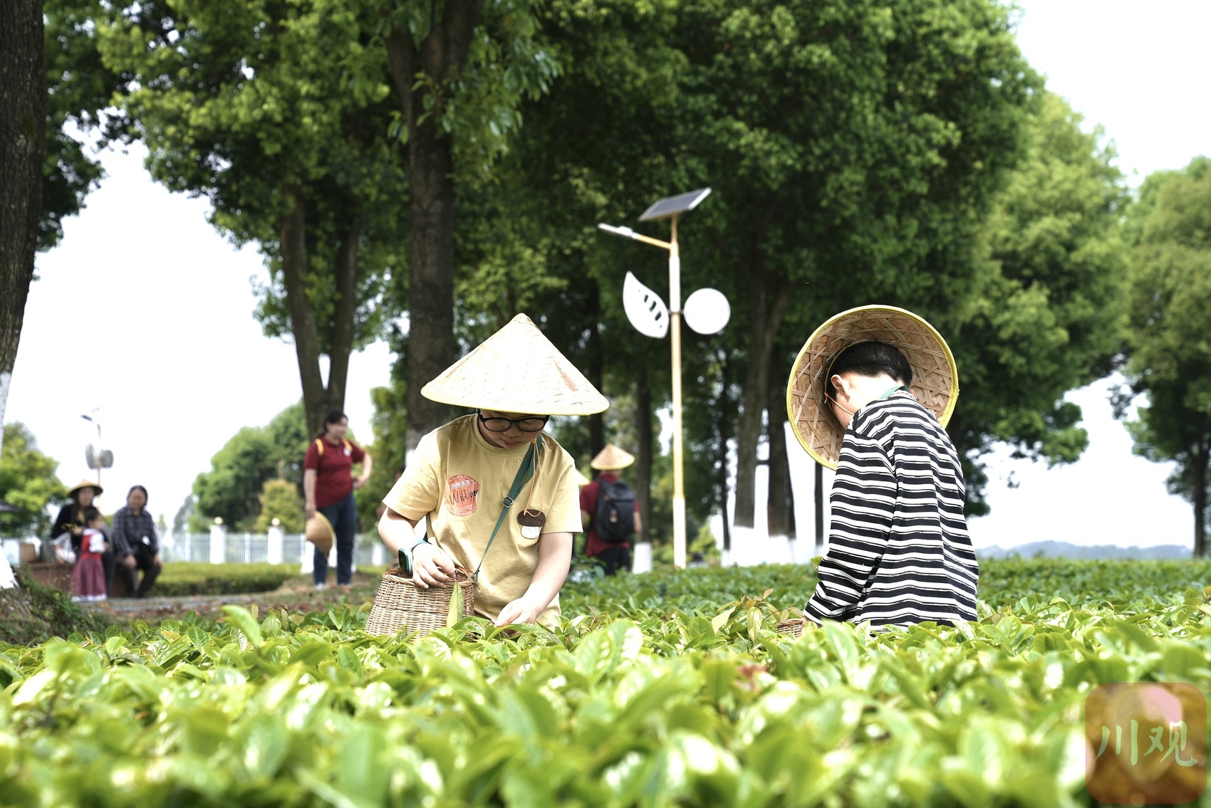 春假来临,采茶研学游正当时。在成乐高速夹江天福服务区,8岁的肖逸辰捧着小竹篓,骄傲地展示自己亲手采摘的嫩芽:“这是我今天上午采的茶,采的叶子都比较嫩。”