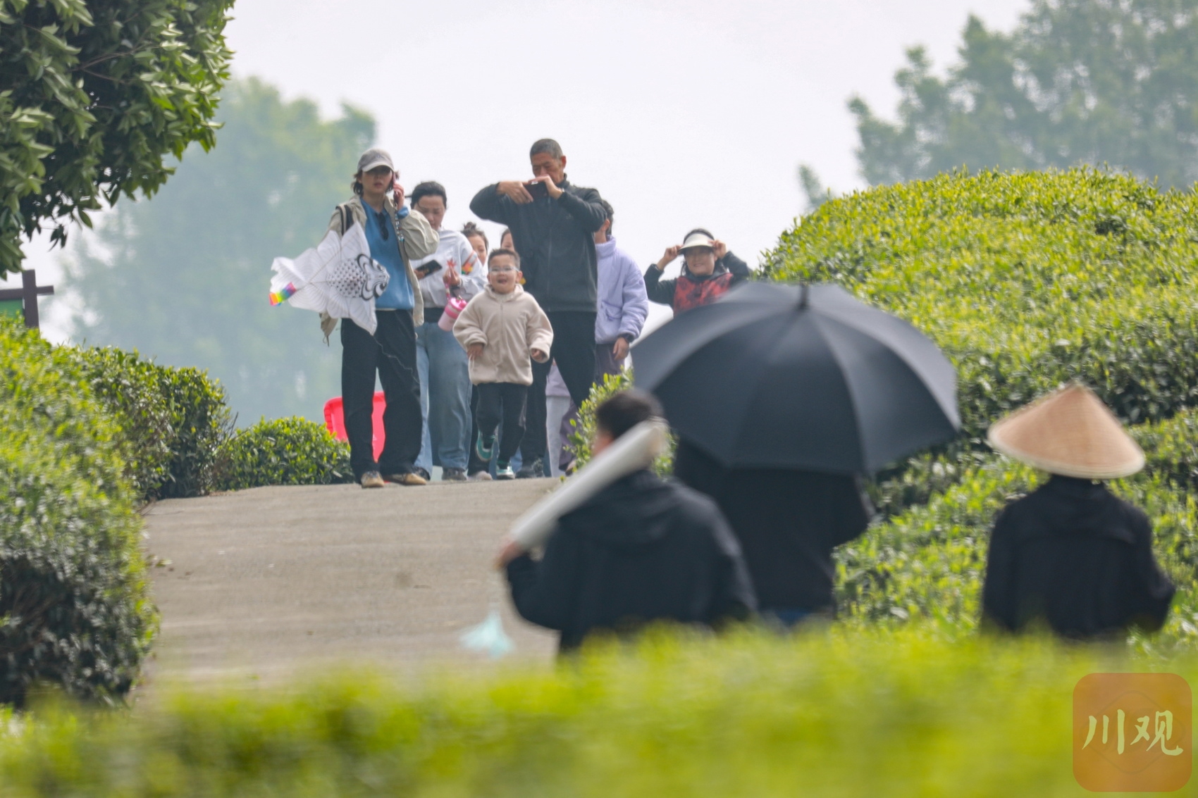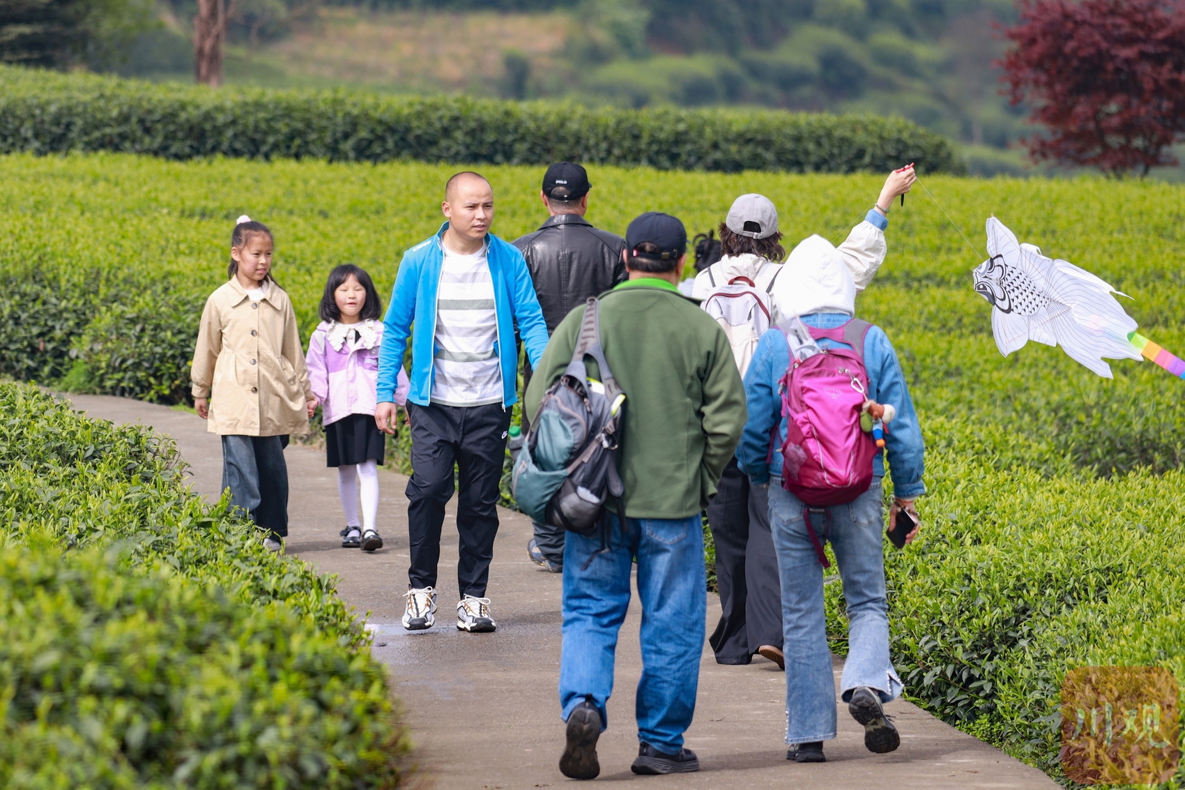 清明节前茶山绿意盎然,家长带孩子们来雅安游玩