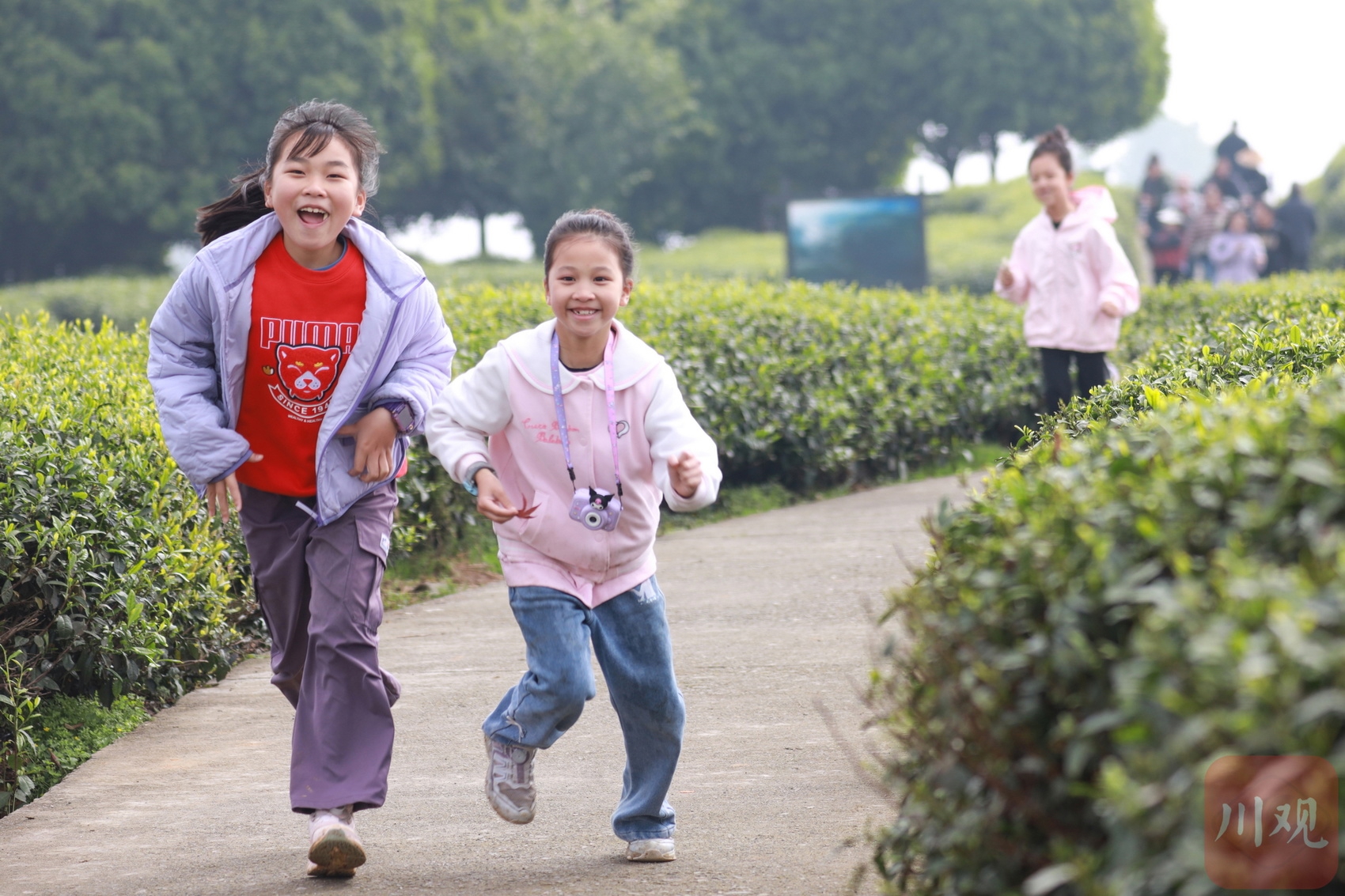 孩子们在茶园绿道奔跑游玩