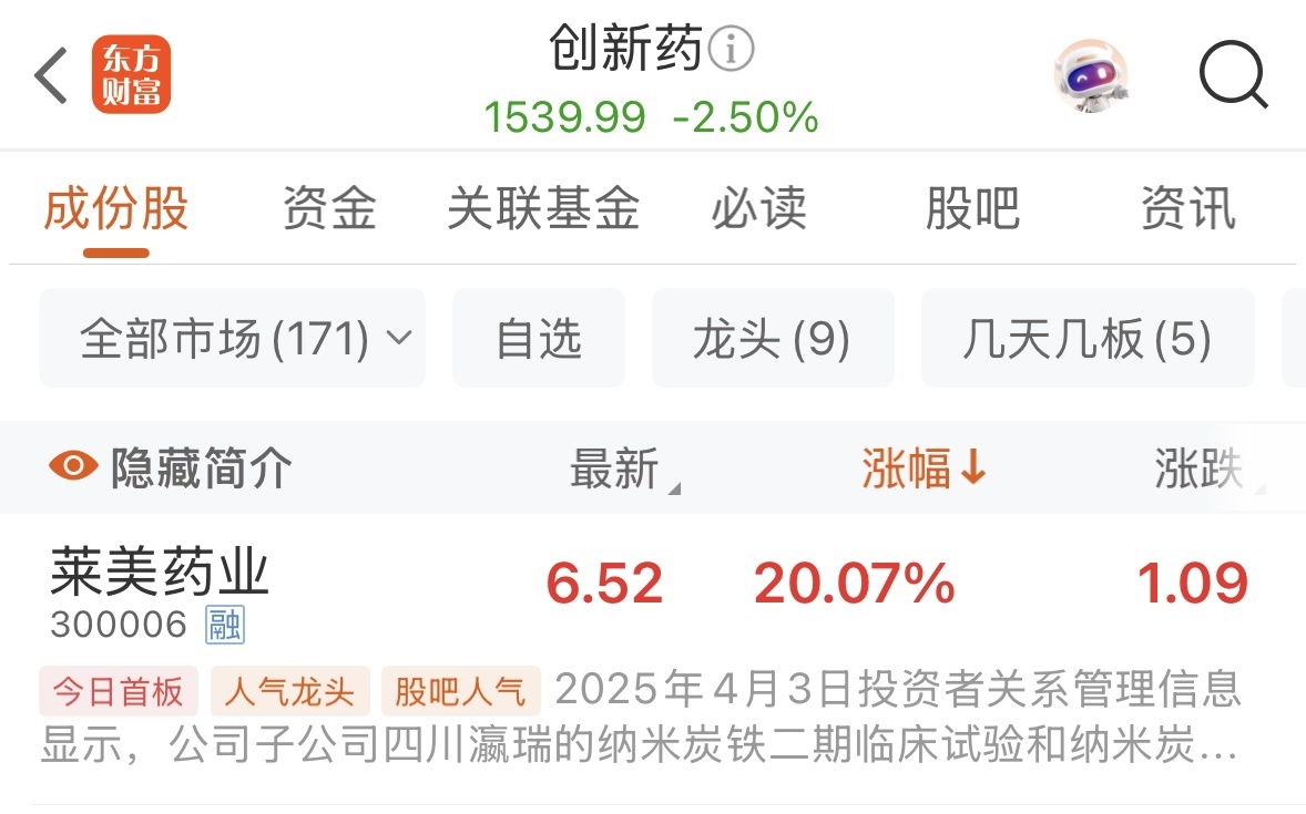 今日A股走弱,既是昨日美国总统特朗普讲话余温未散、市场情绪偏谨慎,也受清明小长假临近影响——三天休市期间变数难料,资金普遍选择落袋观望、不敢“恋战”。就连近期市场最爱的避险宠儿创新药也暂时“失宠”,板块整体走弱,仅呈现局部活跃,莱美药业逆势涨停,其余多数个股表现平淡。展望后市,业内专家分析认为,短期市场仍将以震荡消化情绪为主,待清明假期不确定性落地后,市场有望逐步重拾主线逻辑。