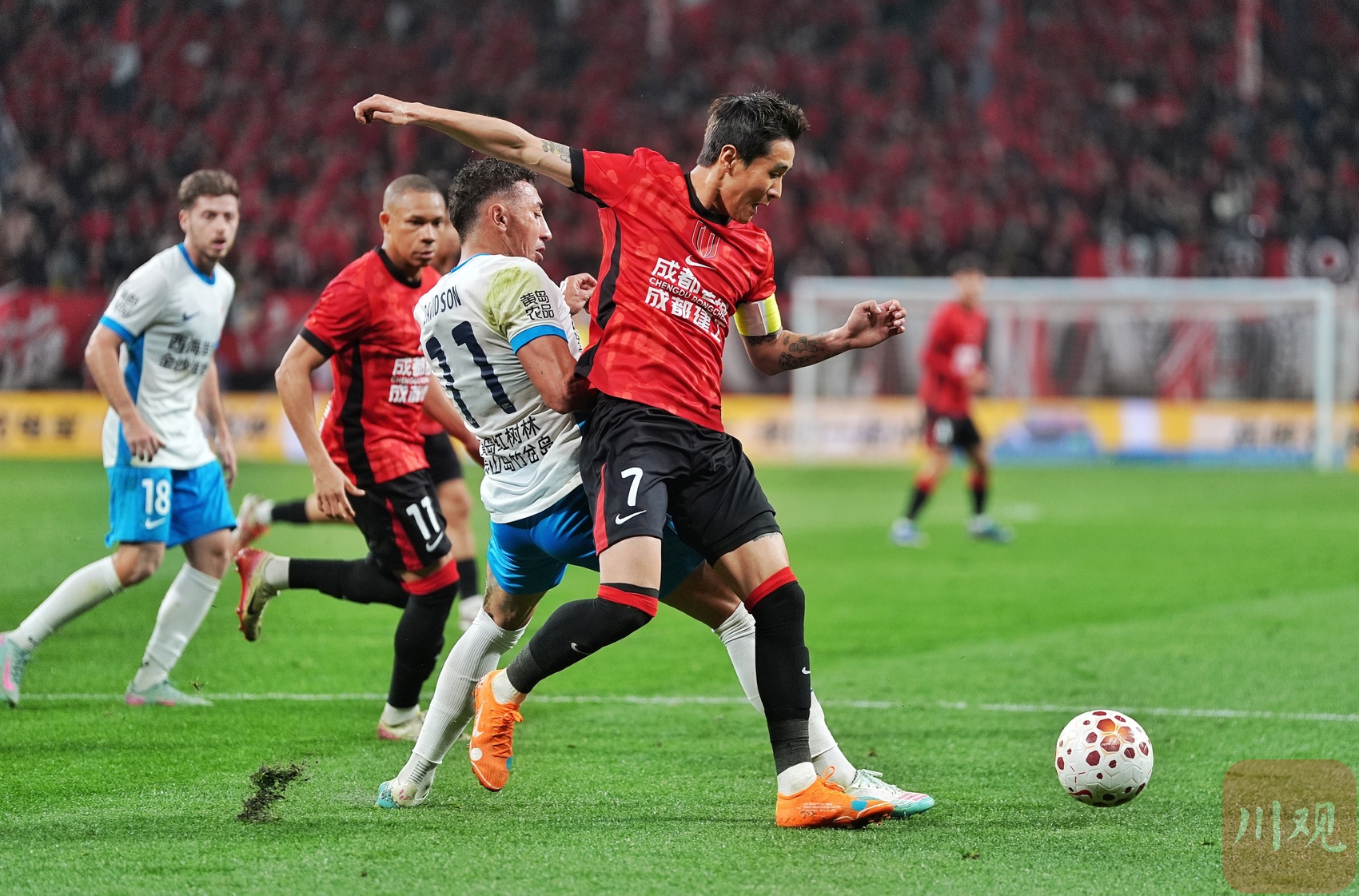 成都蓉城队长韦世豪场上拼抢。