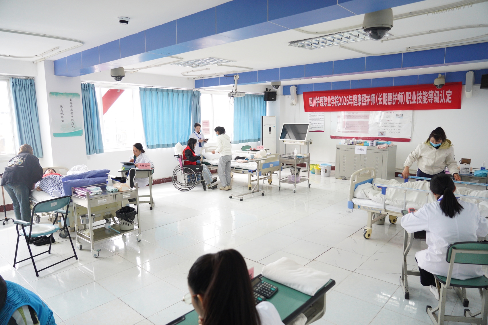 4月3日,四川护理职业学院内长期照护师职业技能等级认定实操现场,考生们专注开展实操:有的俯身照料卧床模拟人,细致完成生活照护操作;有的协助轮椅上的模拟老人,规范进行转移照护,动作娴熟轻柔……考评员端坐桌前,严格对照标准逐项打分。考试过程全方位检验着长期照护师的实操技能与职业素养。