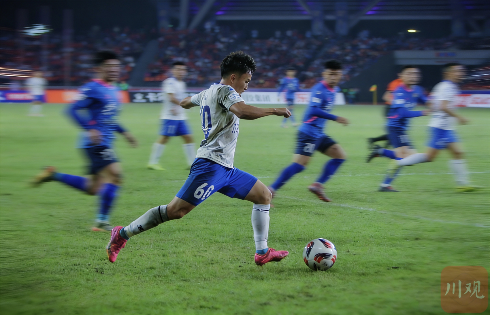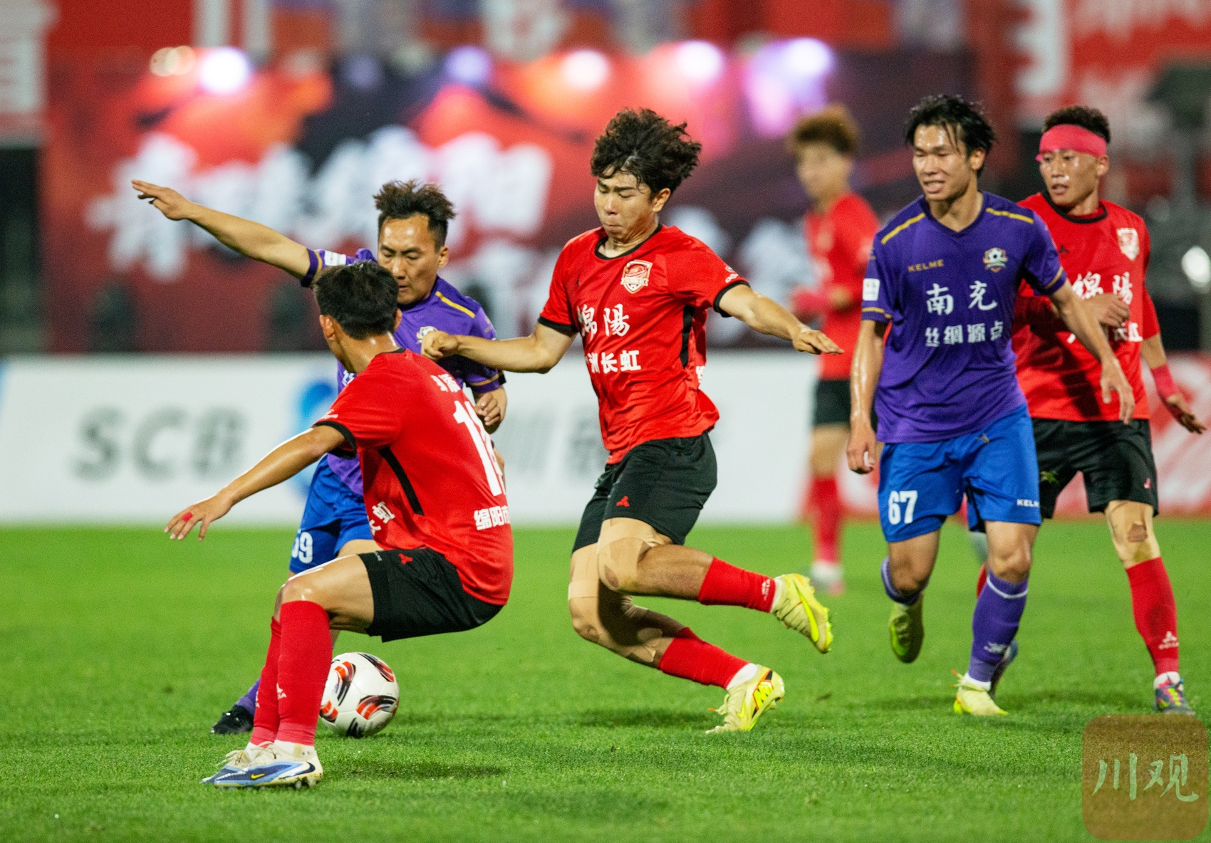 绵阳九洲长虹队对阵南充丝绸原点队,球员赛场拼抢激烈。C视觉摄影师 钟欢 摄