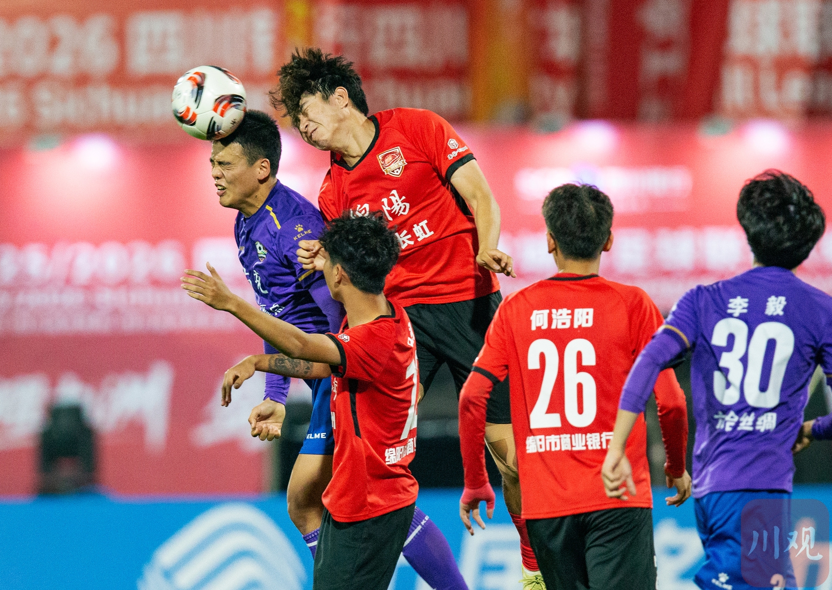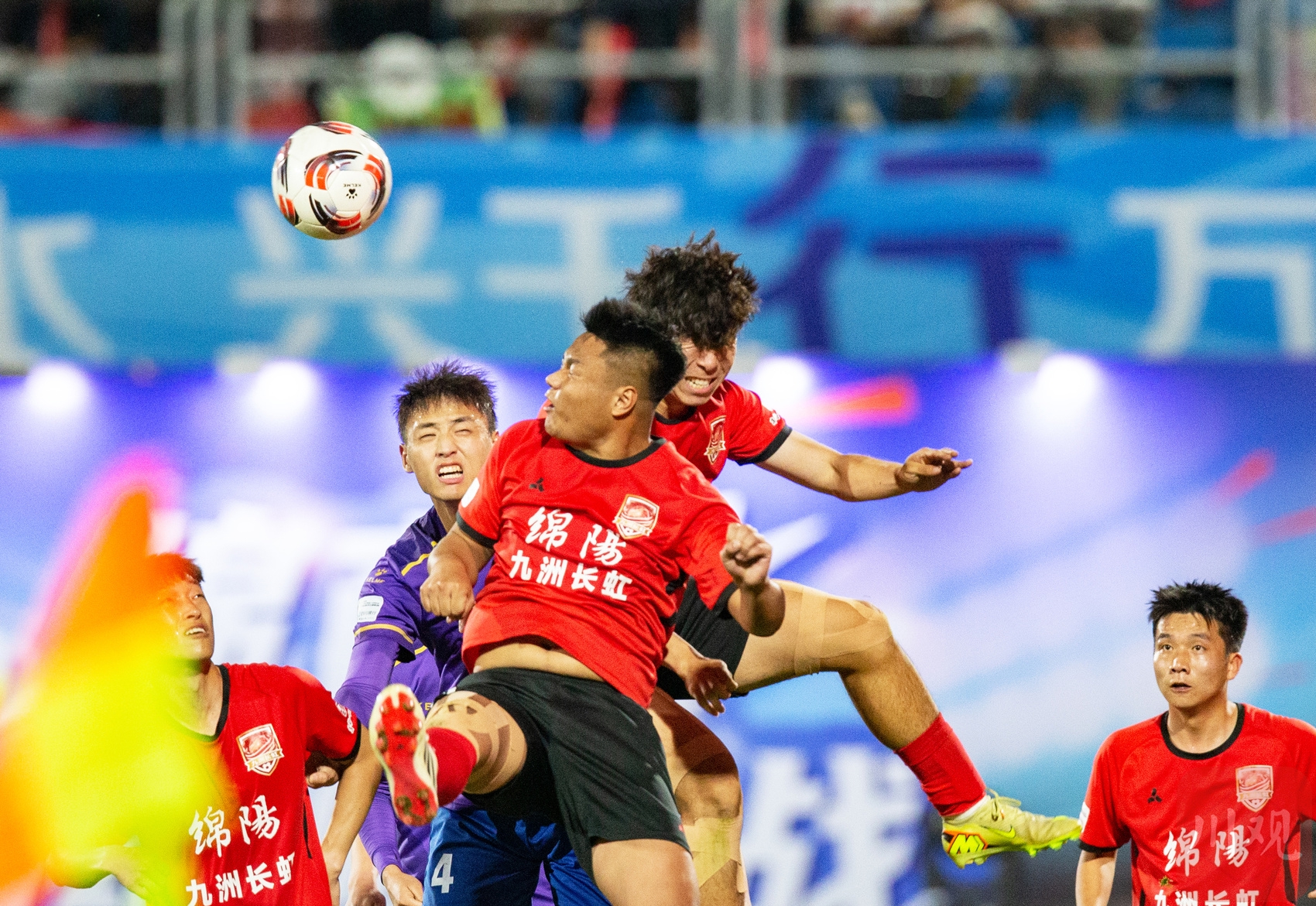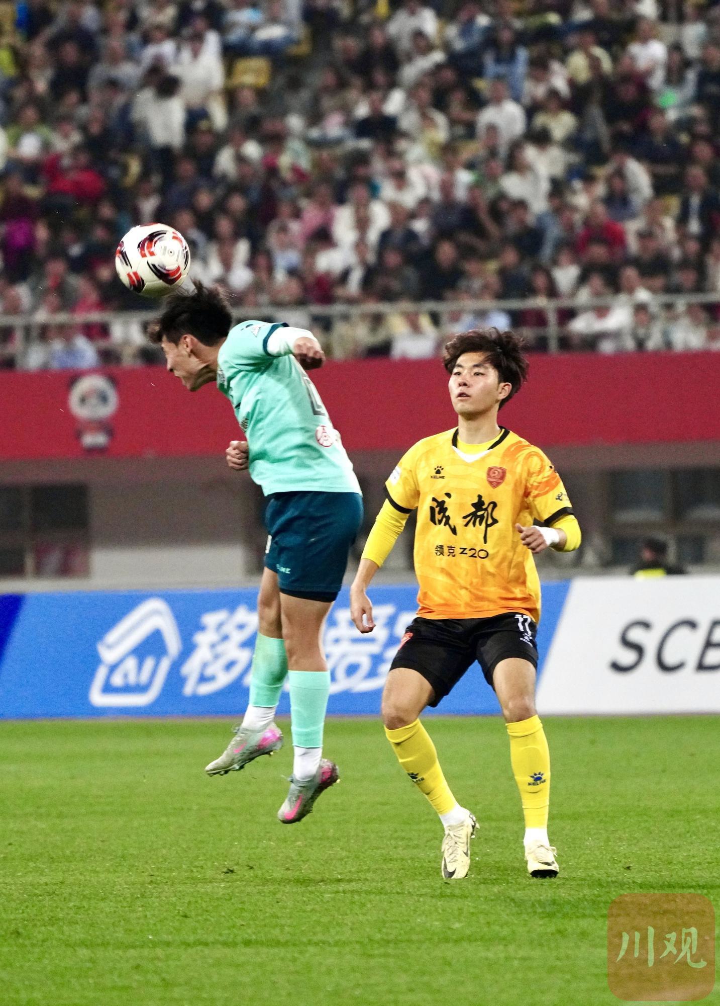 球员高空争顶,赛场拼抢激烈。C视觉摄影师 钟欢 摄