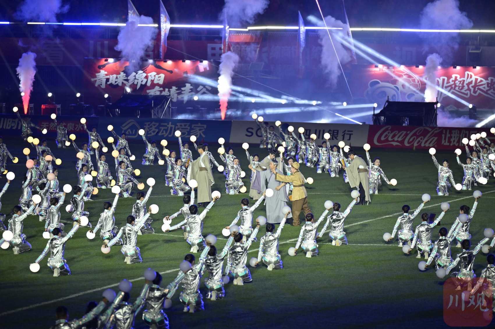 绵阳九洲长虹队主场对战南充丝绸原点队。中场表演科技感十足。C视觉签约摄影师 杜康 摄