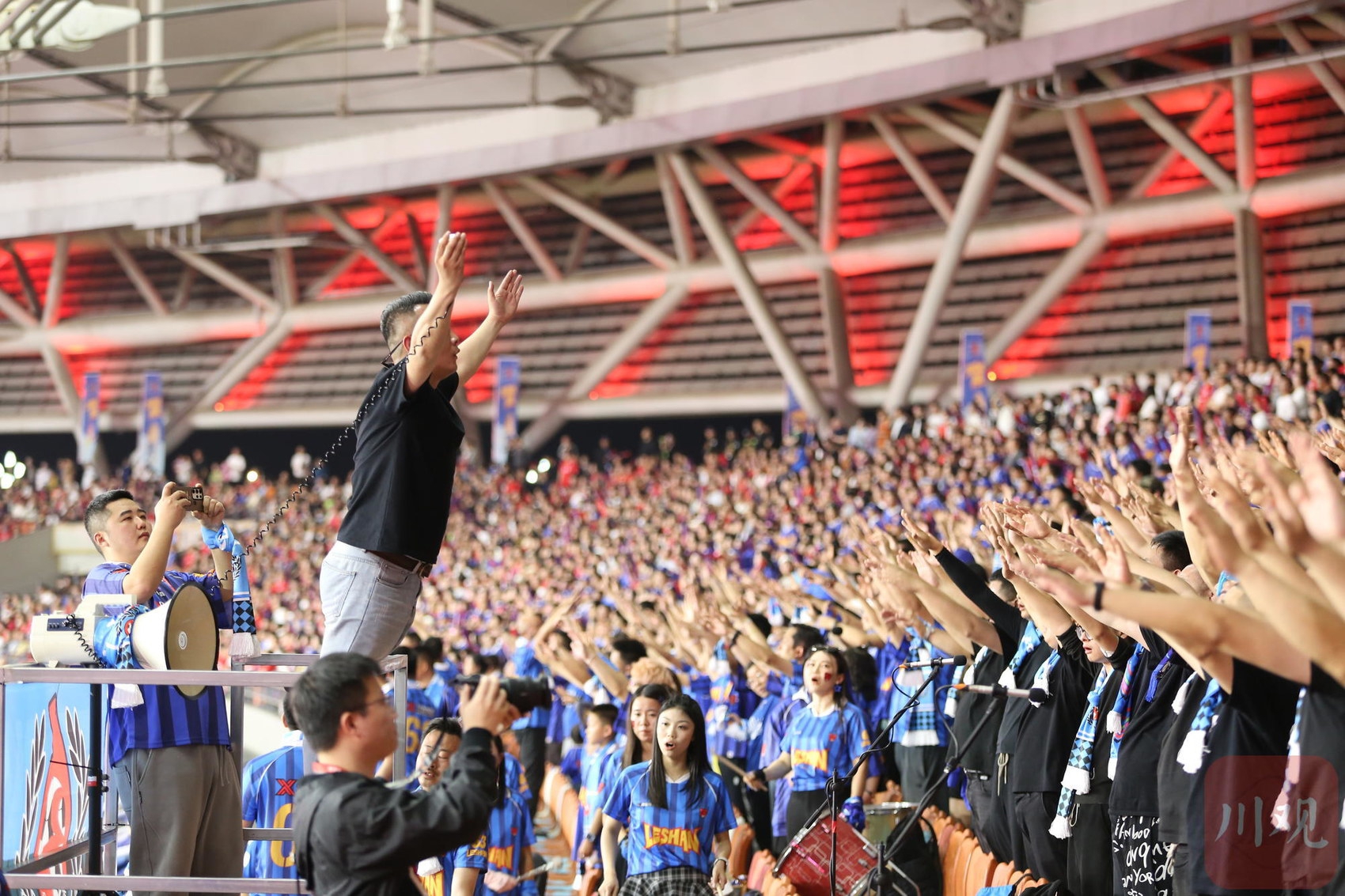 乐山奥林匹克体育中心,自贡灯城燊龙队球迷现场呐喊助威。C视觉签约摄影师 李华时 摄