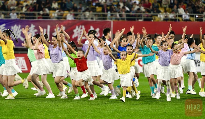 成都锦城队对阵宜宾长江首城队赛前,少儿啦啦操活力暖场。 C视觉签约摄影师 刘婷 摄