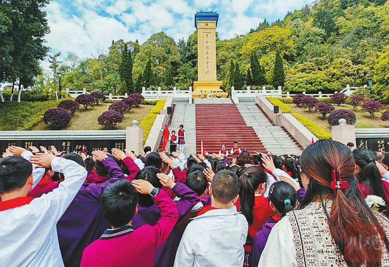 4月1日,南充市涪江路小学在南充烈士陵园举行“追寻·2026·清明祭英烈”活动。强勇 摄