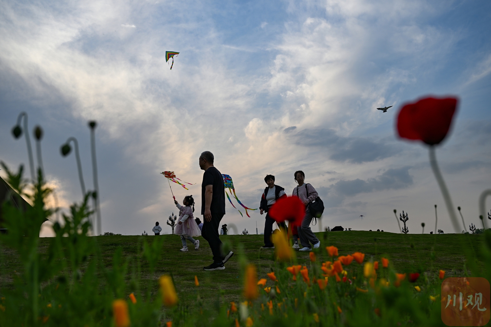 2026年4月4日,游客在四川天府新区兴隆湖畔放风筝。